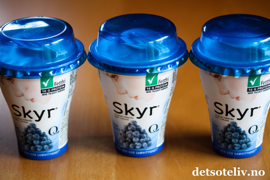 ♥ Til blåbærfromasjen har jeg brukt Skyr blåbær (3 pk à 160 g).