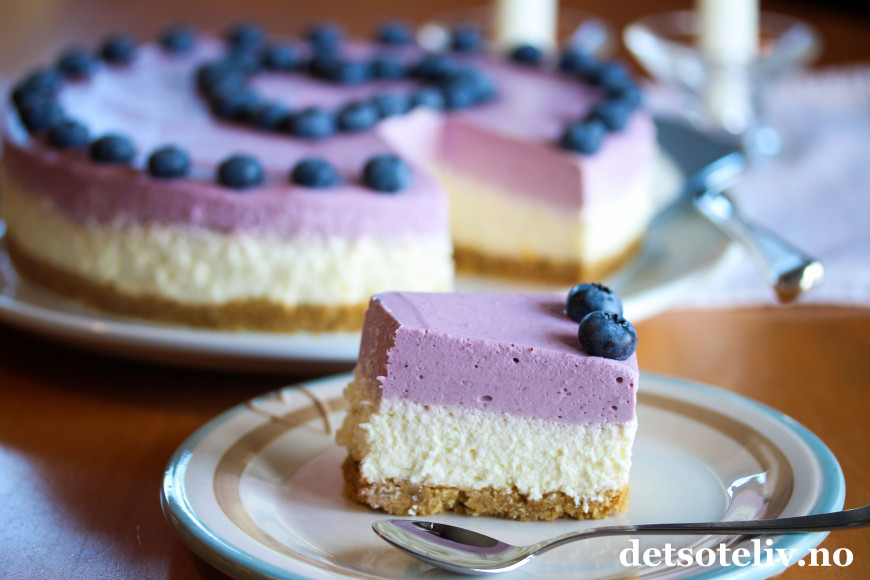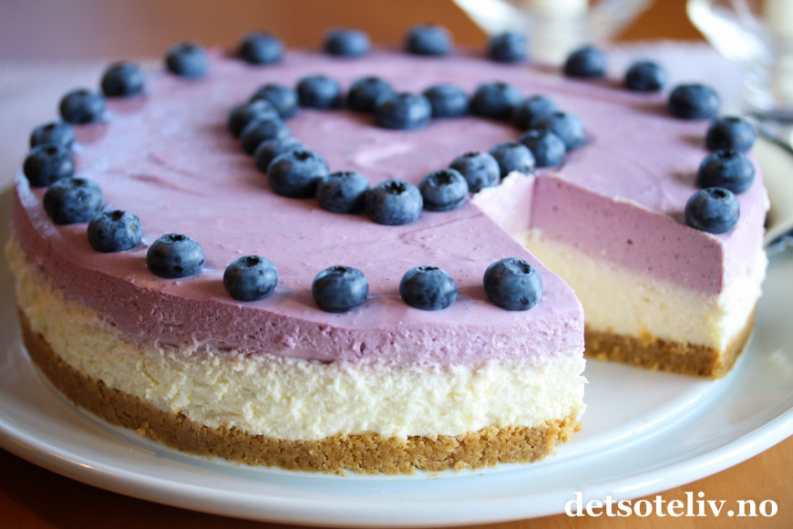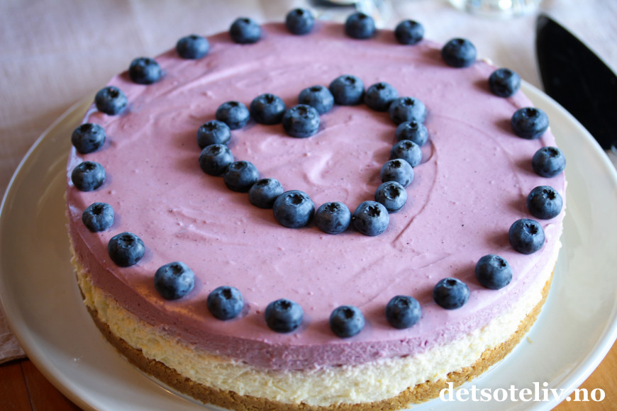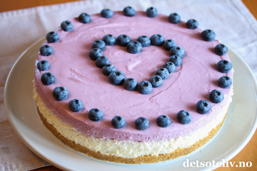 ♥ Kaken kan lages over en todagersperiode, slik at du lar fromasjen stivne over natten. Den bør serveres samme dag som den pyntes med blåbær, så de er helt ferske og fine!