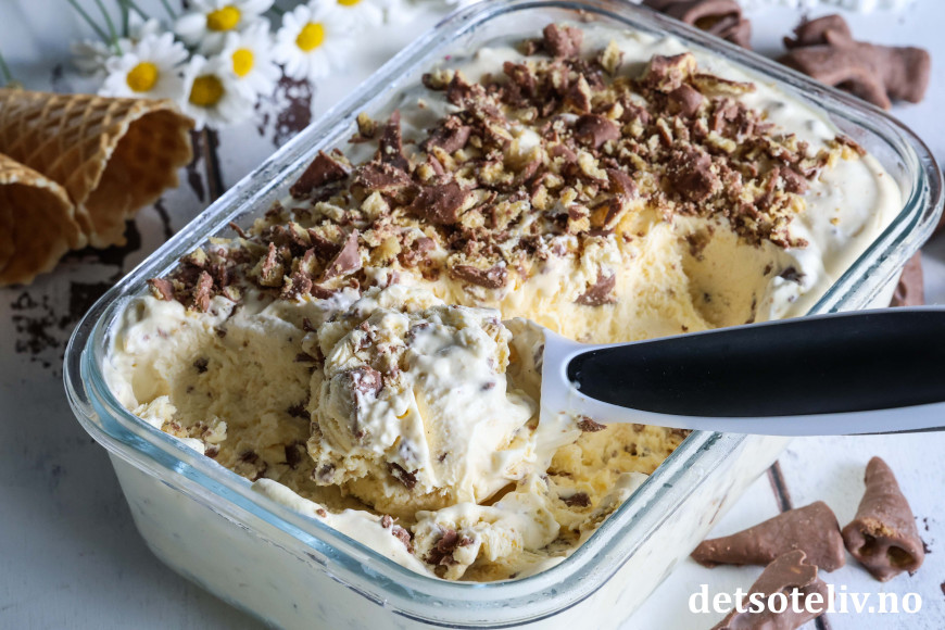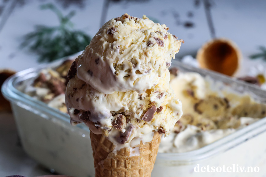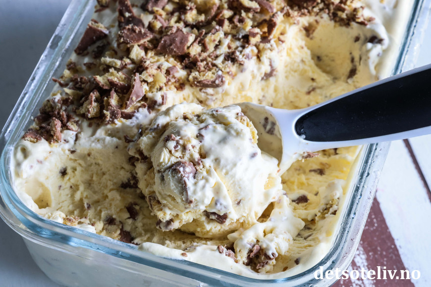 Denne kjempegode iskremen blir fyldig og kremete, og får kjempedigg smak av vanilje og hakket Smash! 😍