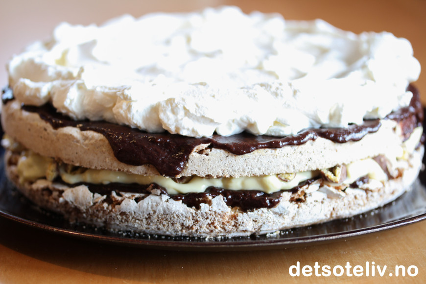 Sett kakebunnene kjølig i ca 1 time til sjokoladekremen har festnet seg.