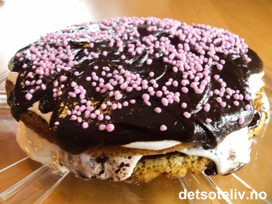 Merk at dette er en typisk amerikansk kake, som er både mektig, søt og litt svulstig. Men NAM!