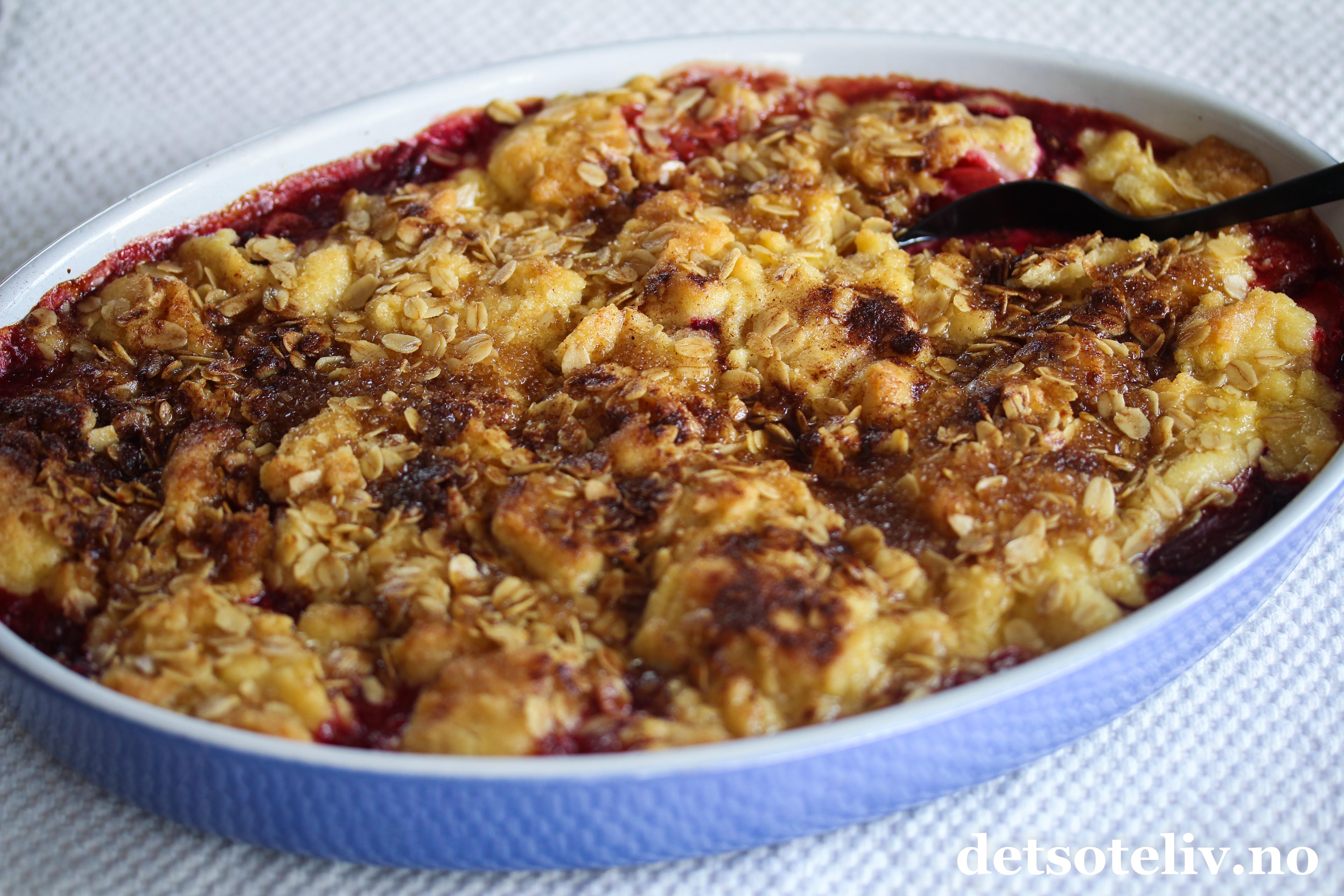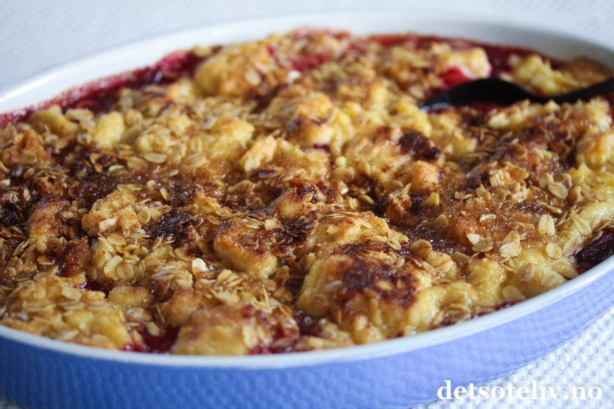 Gjett om det smaker godt med varme, bakte plommer som dufter søtt av kanel, brunt sukker og havregryn!