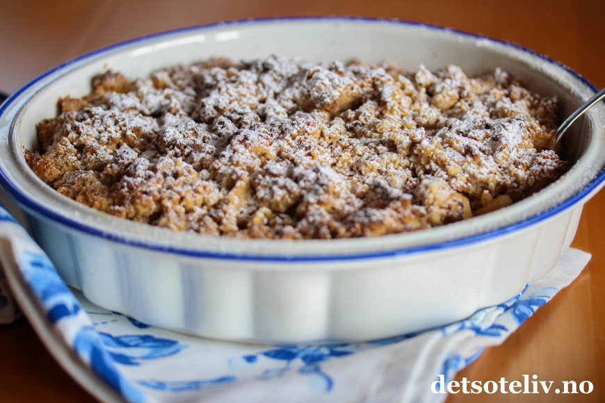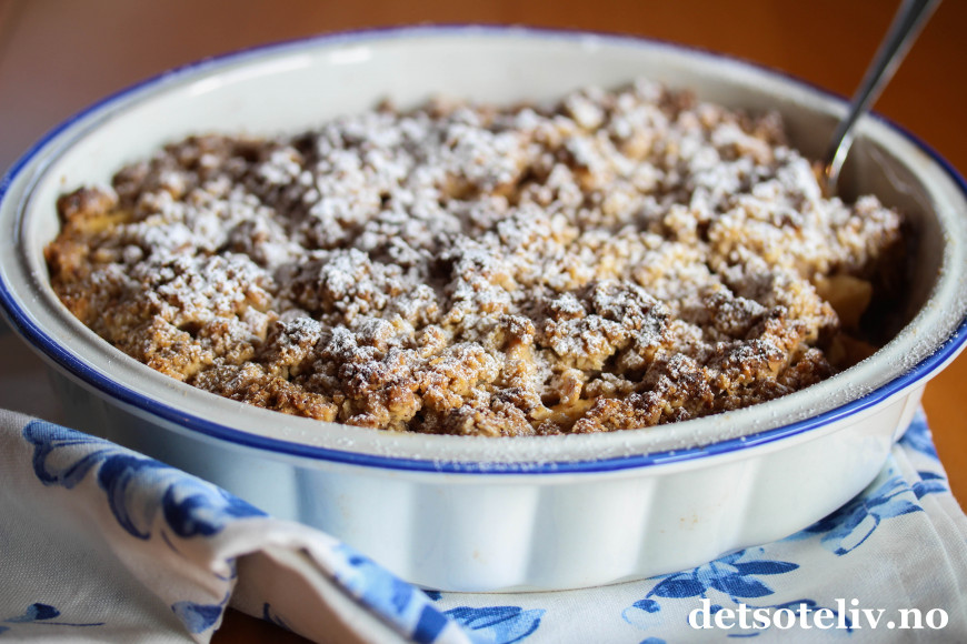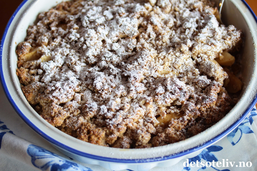 ♥ Se også oppskrift på Smulekake med müsli og eple og Smuldrepai med epler og mange andre varianter av smuldrepaier her.