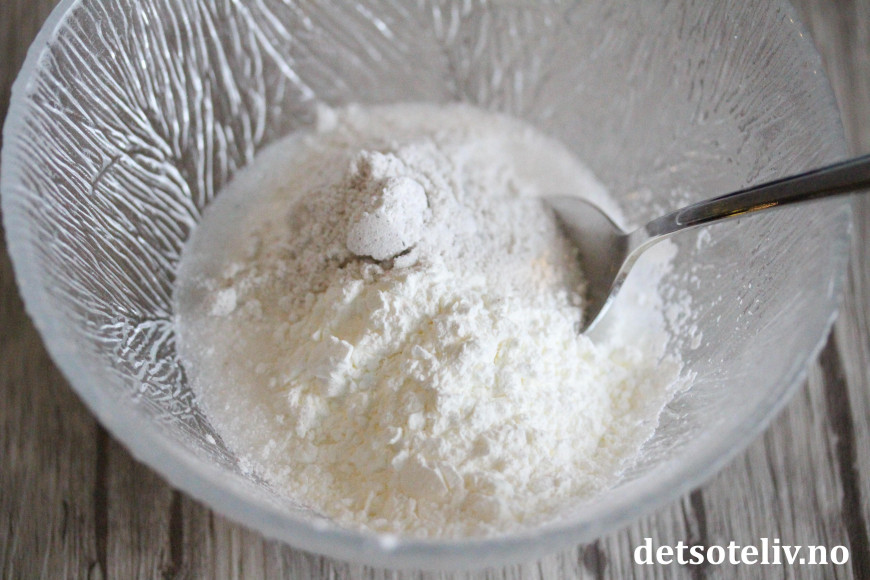 Bland sammen sukker, maisenna og vaniljesukker i en skål.