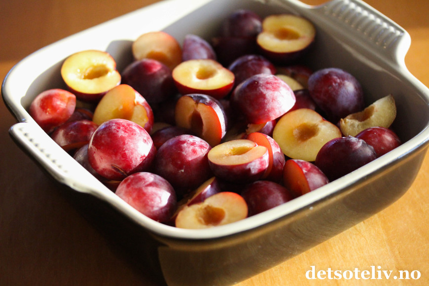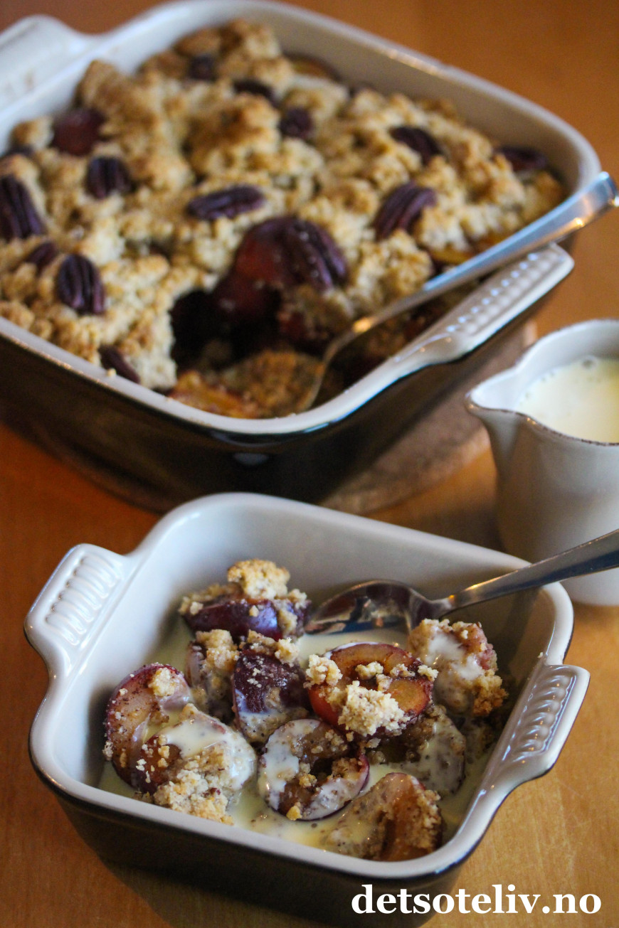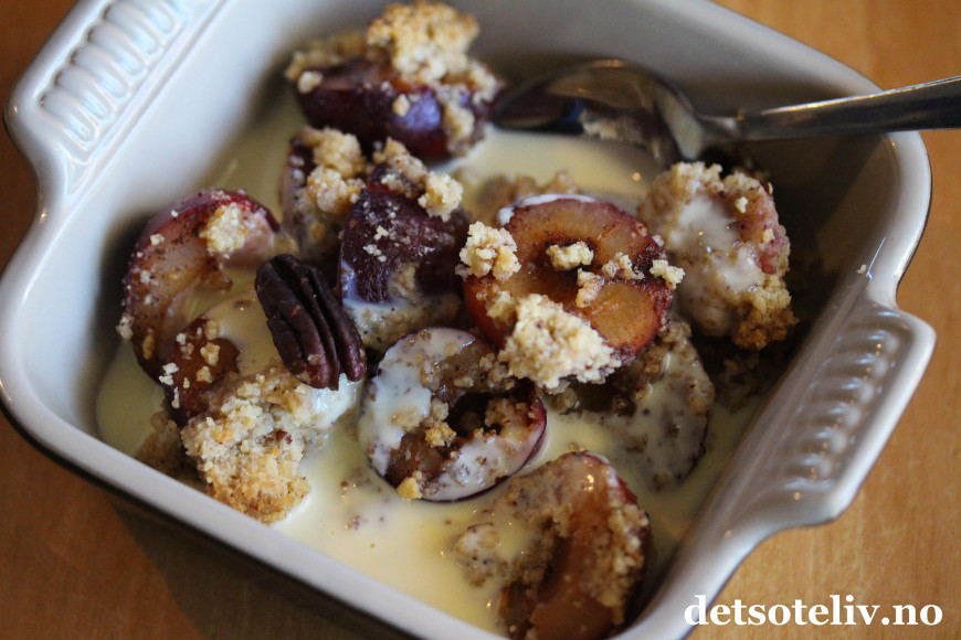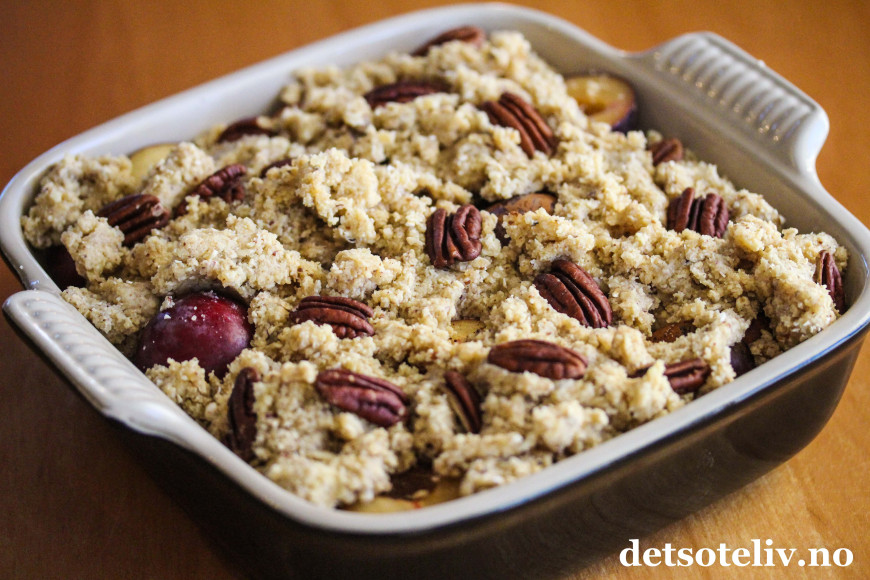 ♥ Se også oppskrift på Smuldrepai med plommer og lønnesirup.