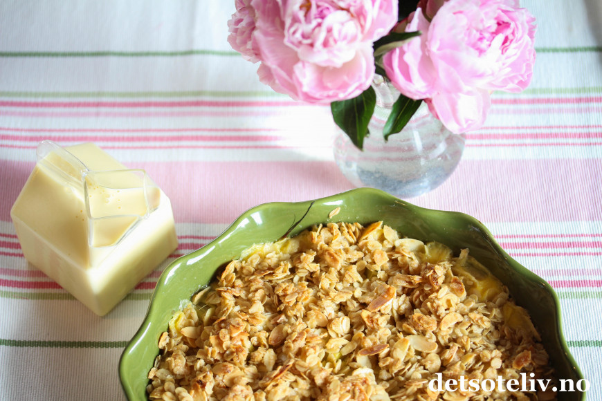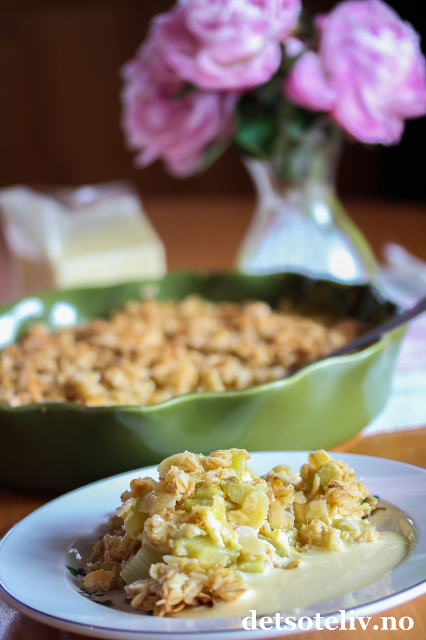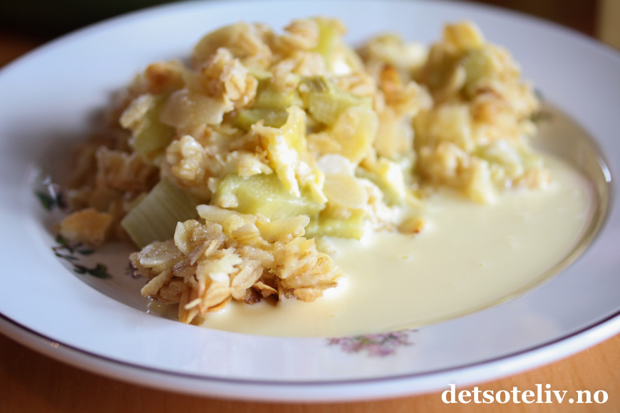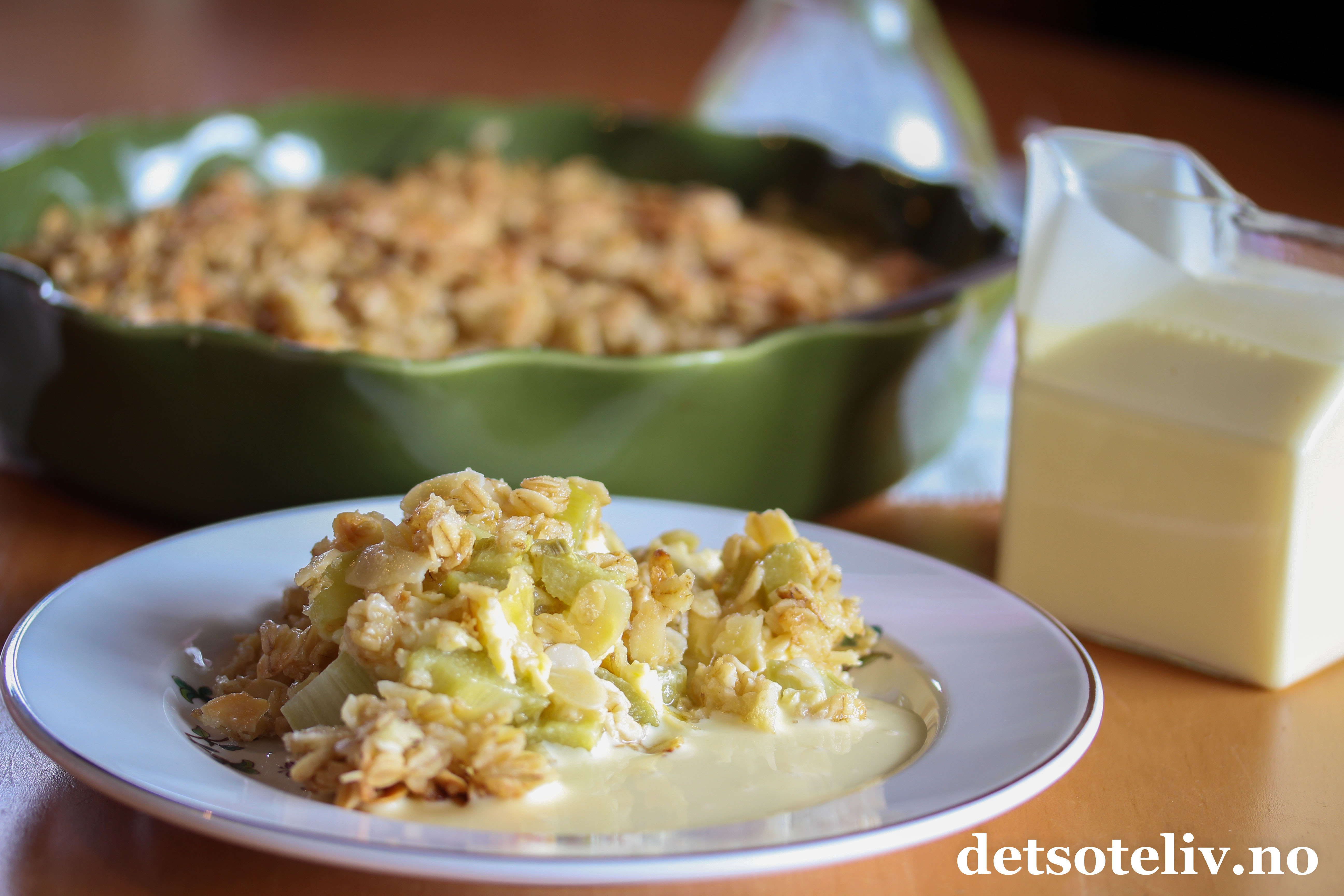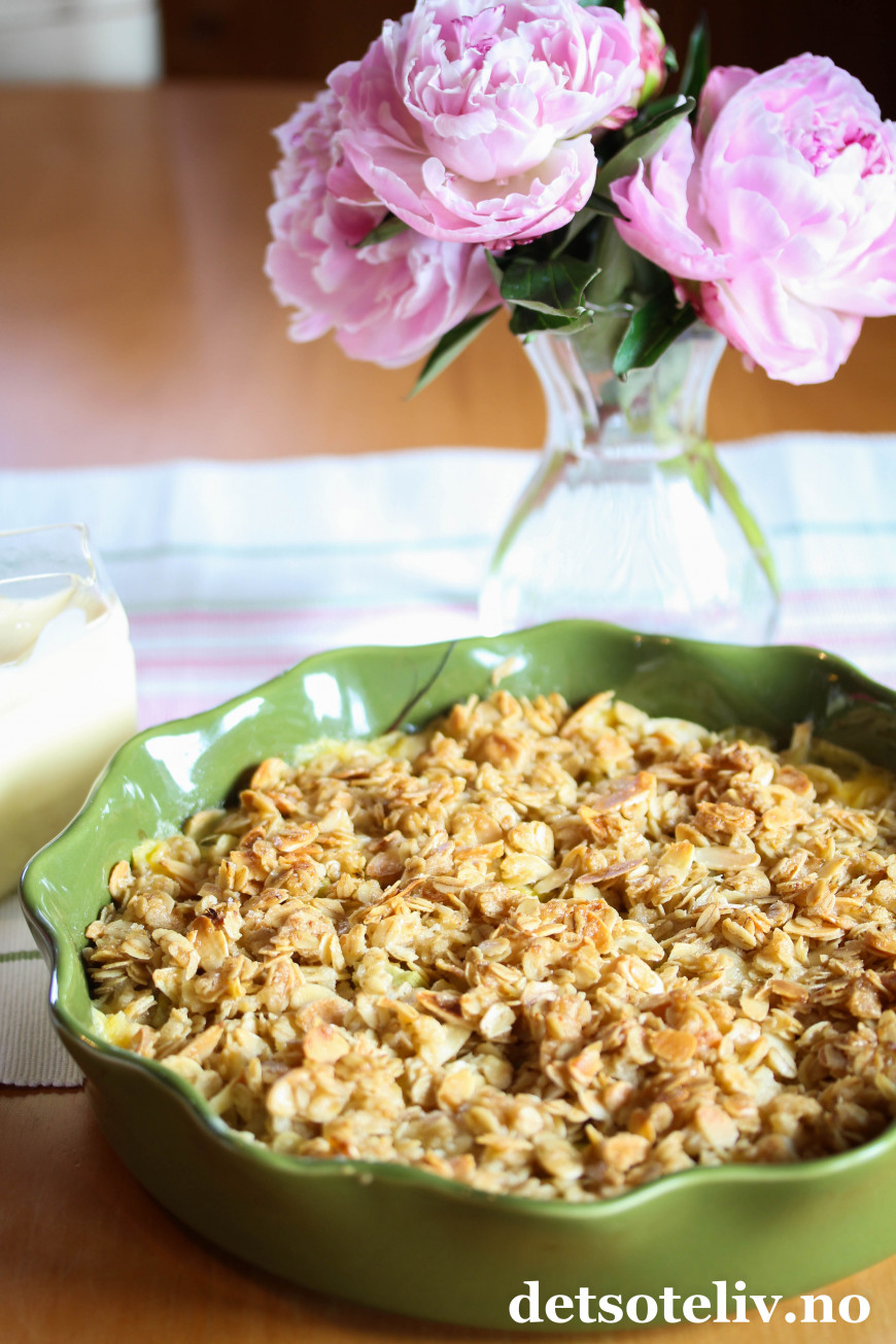 Hva med å lage en lettvint og kjempegod Smuldrepai med rabarbra og vaniljekrem denne sommermandagen?
