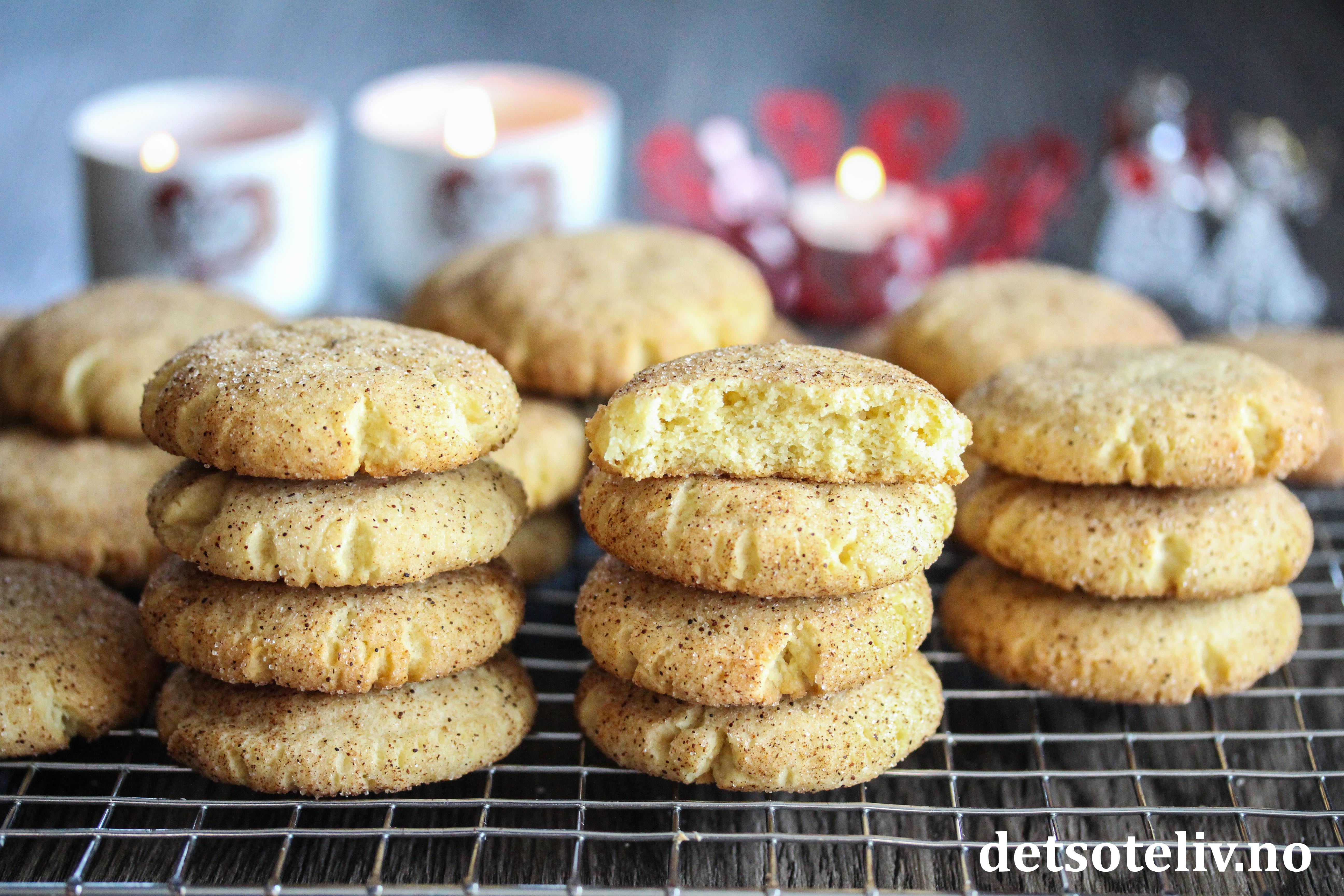 "Snickerdoodles" er en amerikansk kakeklassiker! Kakene kjennetegnes av sin nydelige smak av sukker og kanel. Snickerdoodles skal være sprø utenpå og myke inni. Kakene kan fryses og du kan ta dem opp når det nærmer seg jul, hvis du ikke spiser alle med en gang!