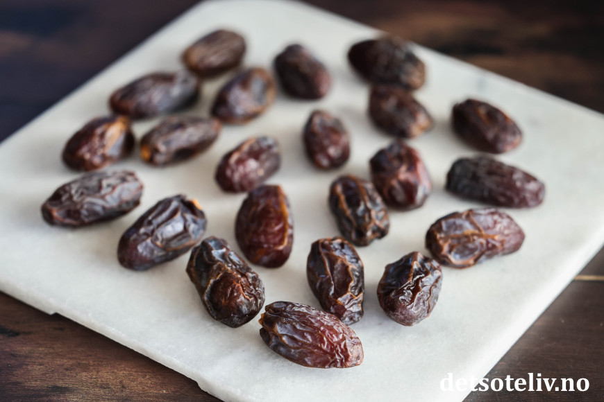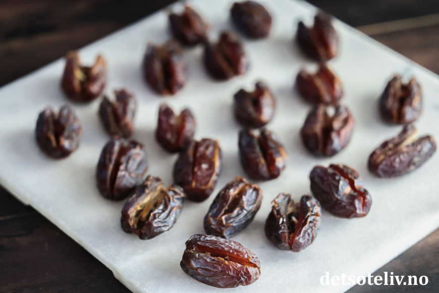 ♥ Bruk store, myke dadler (Medjool dadler) som gjerne kjøpes i løsvekt.