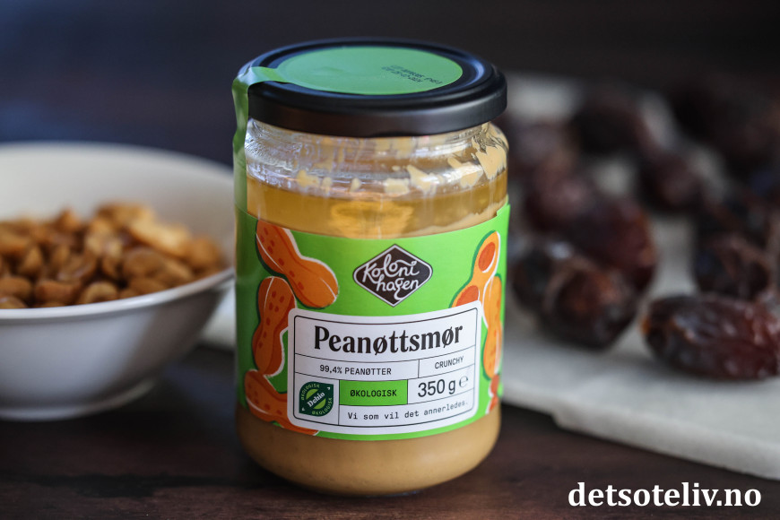 ♥ Jeg bruker her crunchy peanøttsmør, men den kremete typen kan også brukes.