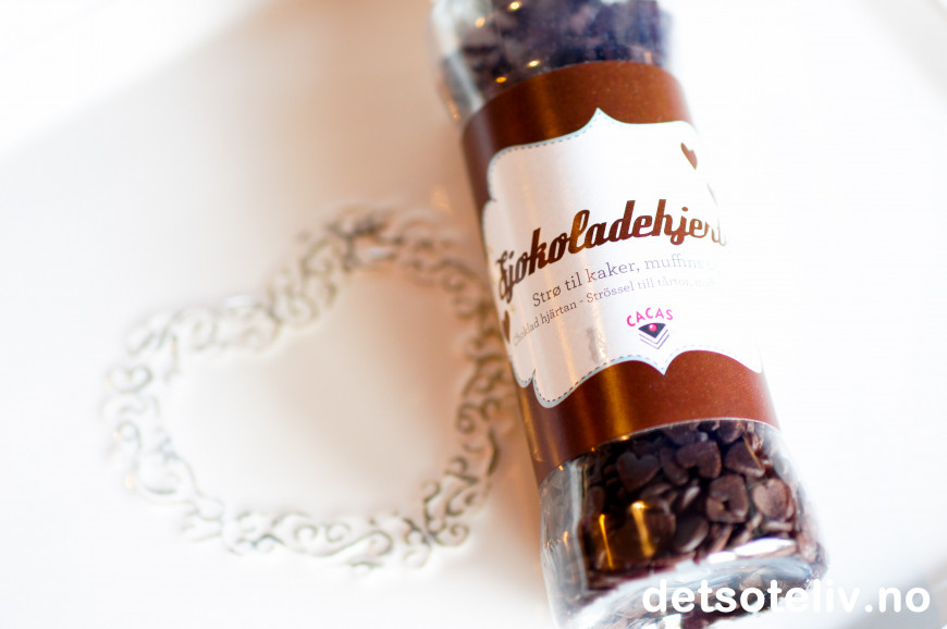 Hjerteformet sjokoladestrøssel har jeg kjøpt hos Cacas, se www.cacas.no.