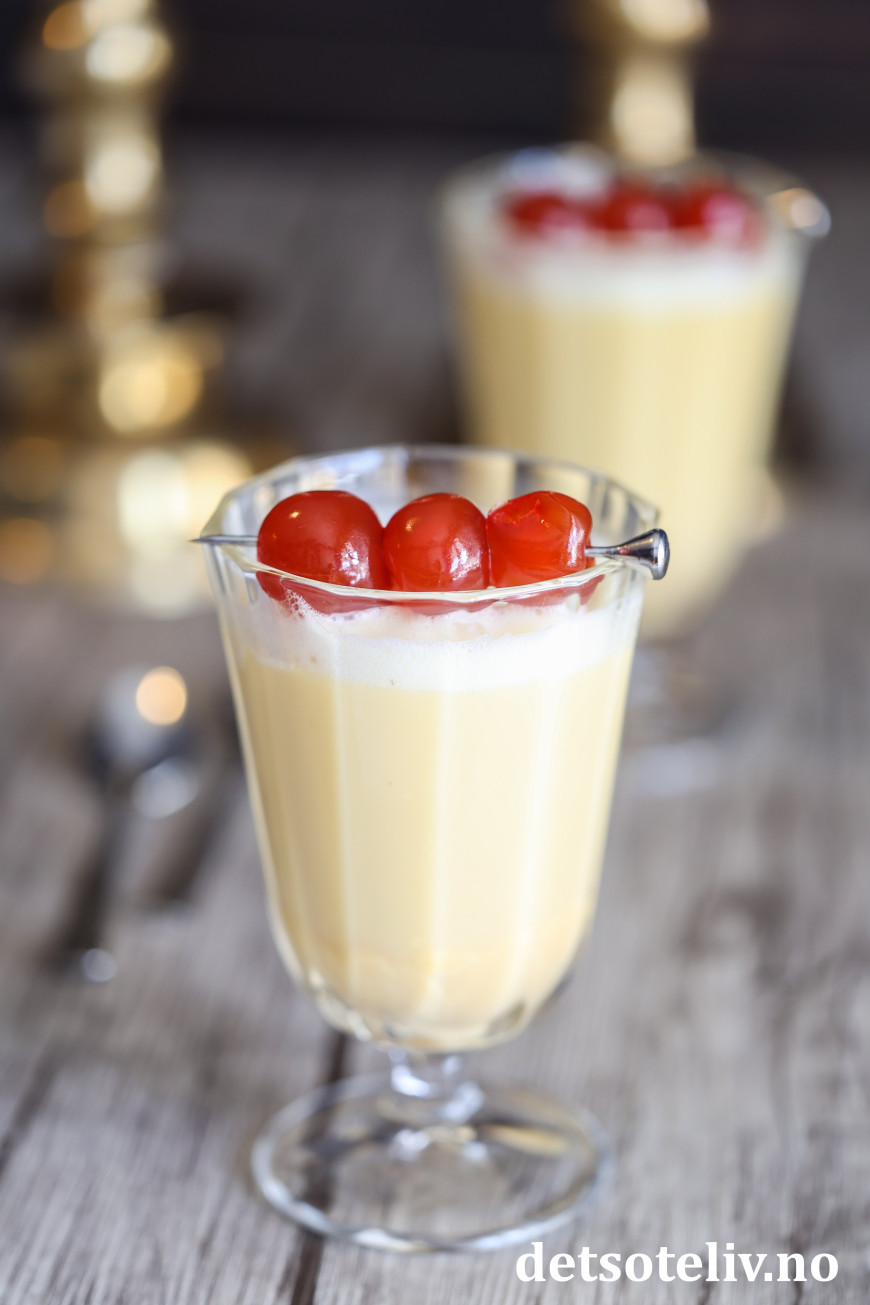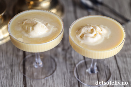 Legg eventuelt en liten kule vaniljeis i glasset.