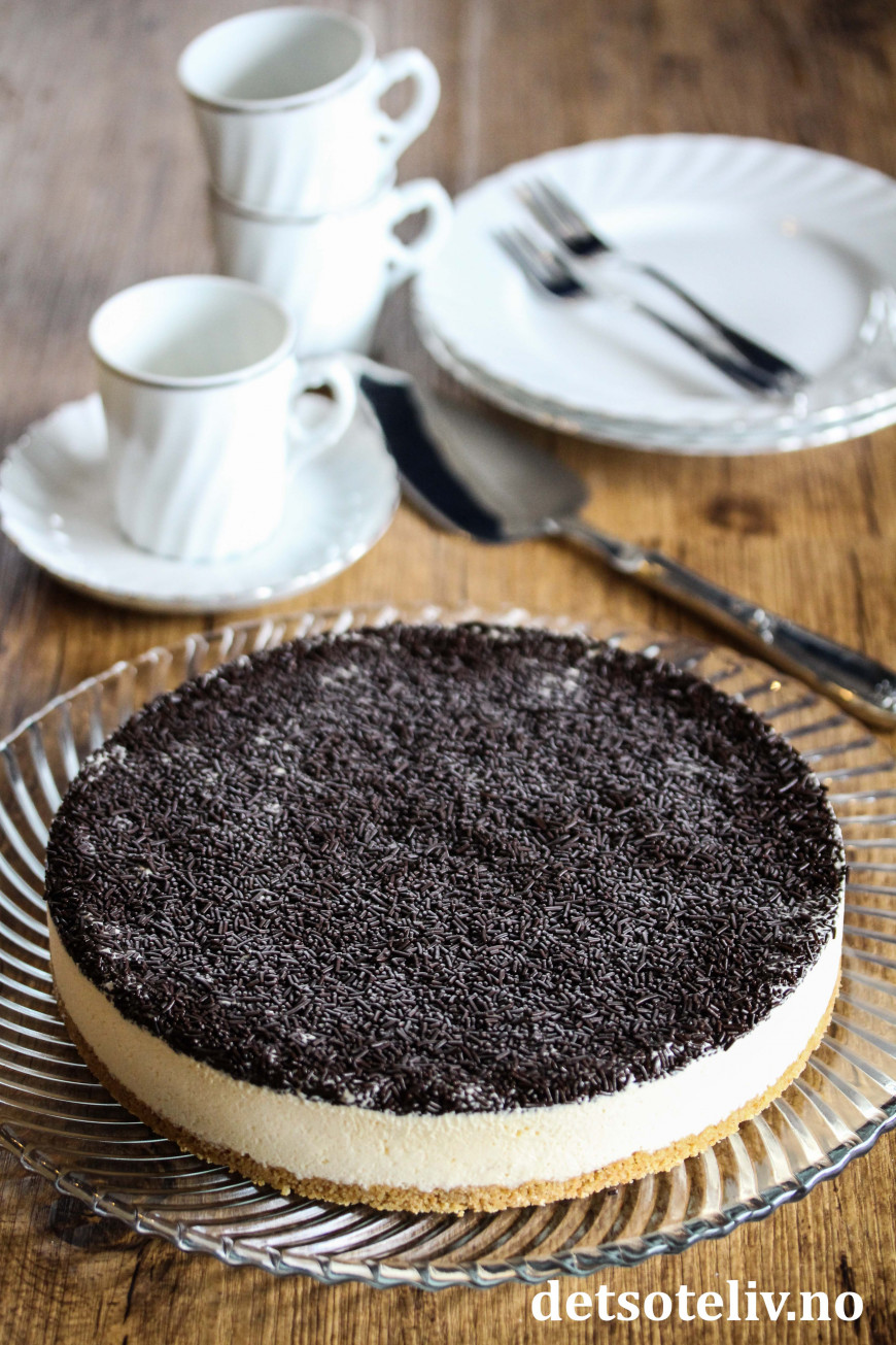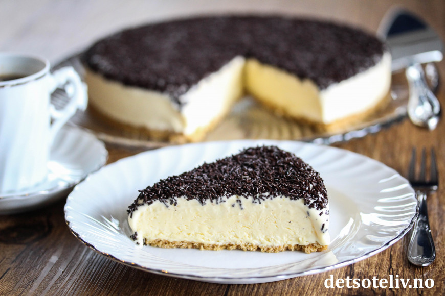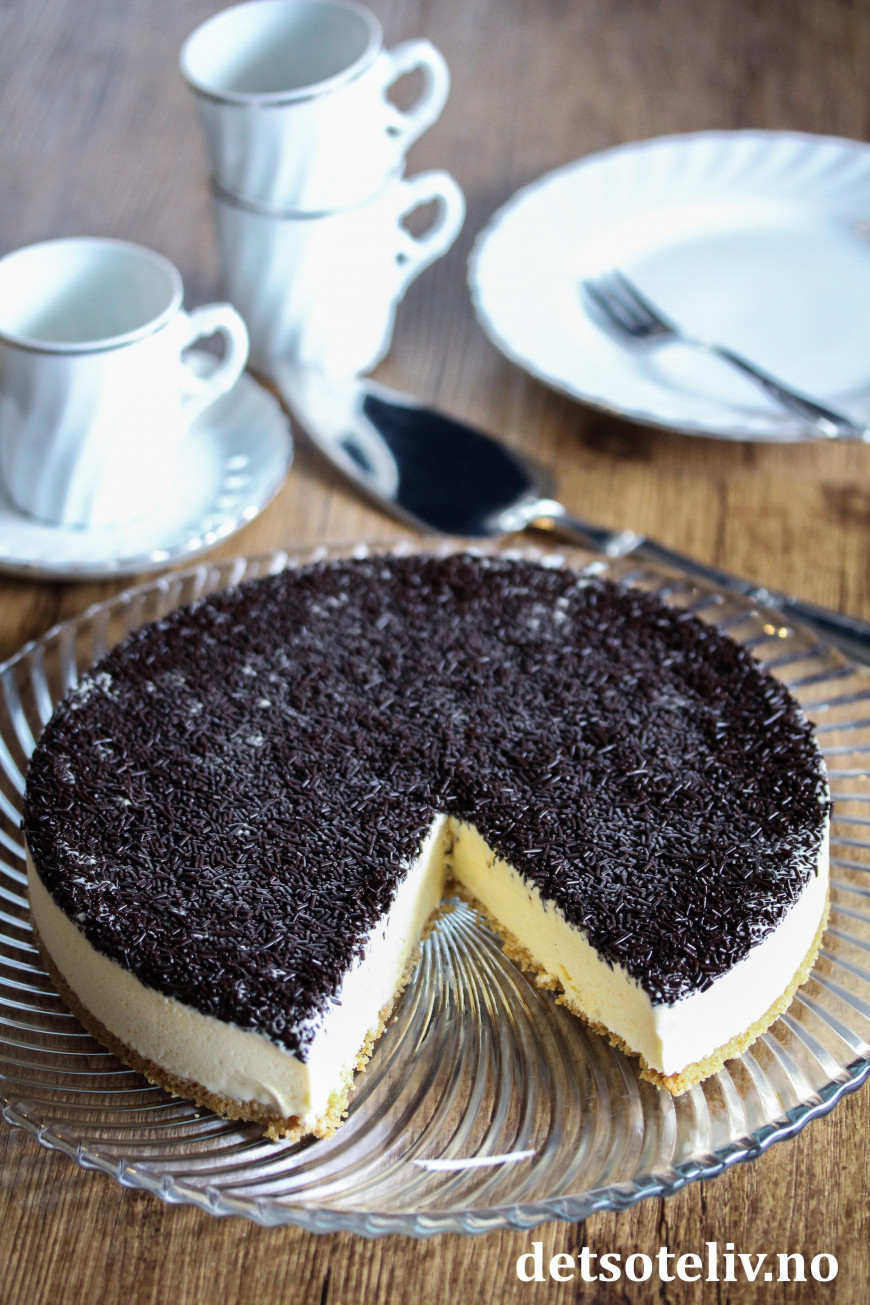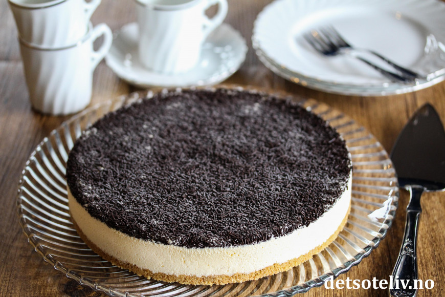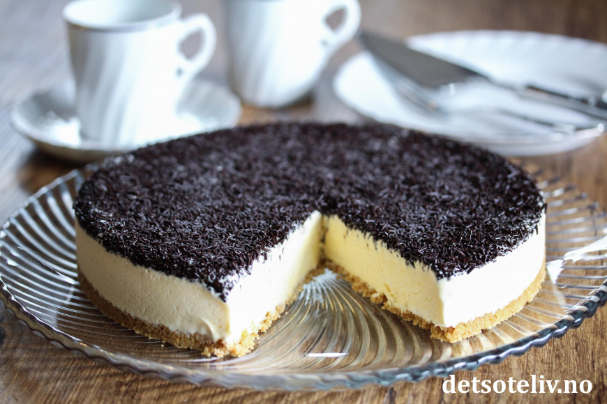 Kaken kan lages i god tid før du skal servere den og oppbevares i fryseren.