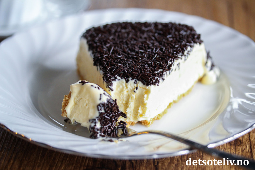 Utrolig god iskake, og enkel å lage. I mangel av strøssel brukte jeg raspet sjokolade.