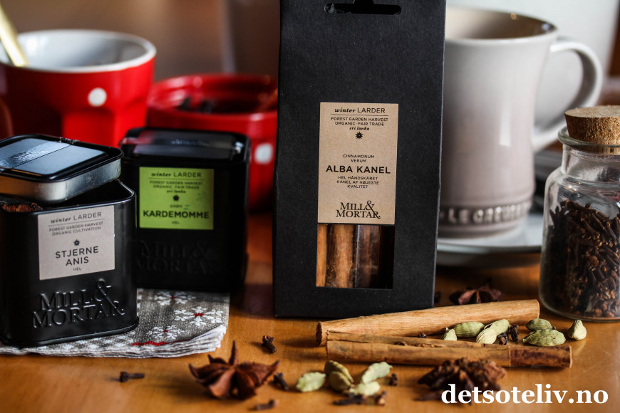 ♥ Det er avgjørende for å få god gløgg at du bruker hele krydder (dvs. ikke malt krydder), som er av god kvalitet. Det beste krydderet jeg vet om er fra danske Mill & Mortar! Bare lukten som slår mot deg når du åpner krydderboksene er en nytelse! Produktene fås kjøpt i flere norske matbutikker, blant annet hos Meny.