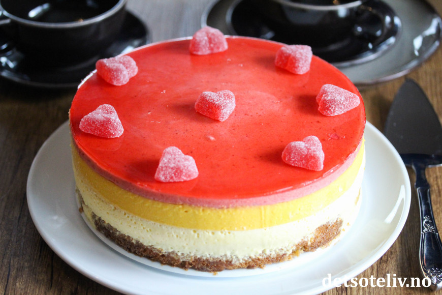 ♥ Denne kaken er ikke vanskelig, men litt omstendelig fordi den består av flere lag formasj som må stivne før du har på det neste laget. Det går fint å lage kaken over flere dager og la fromasjlag stivne over natten.