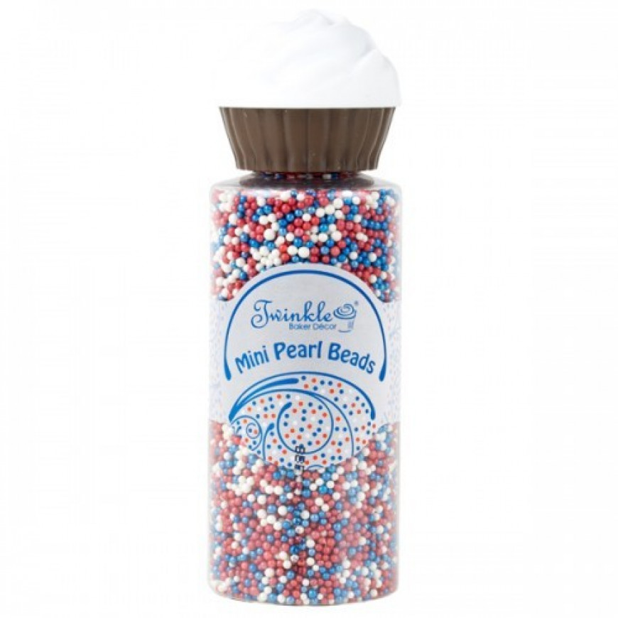 Eller kjøp kakestrøssel med fargene hver for seg og lag din egen kakestrøsselmiks. Siden melisglasuren er hvit, trenger du i grunnen bare blått og rødt strøssel.