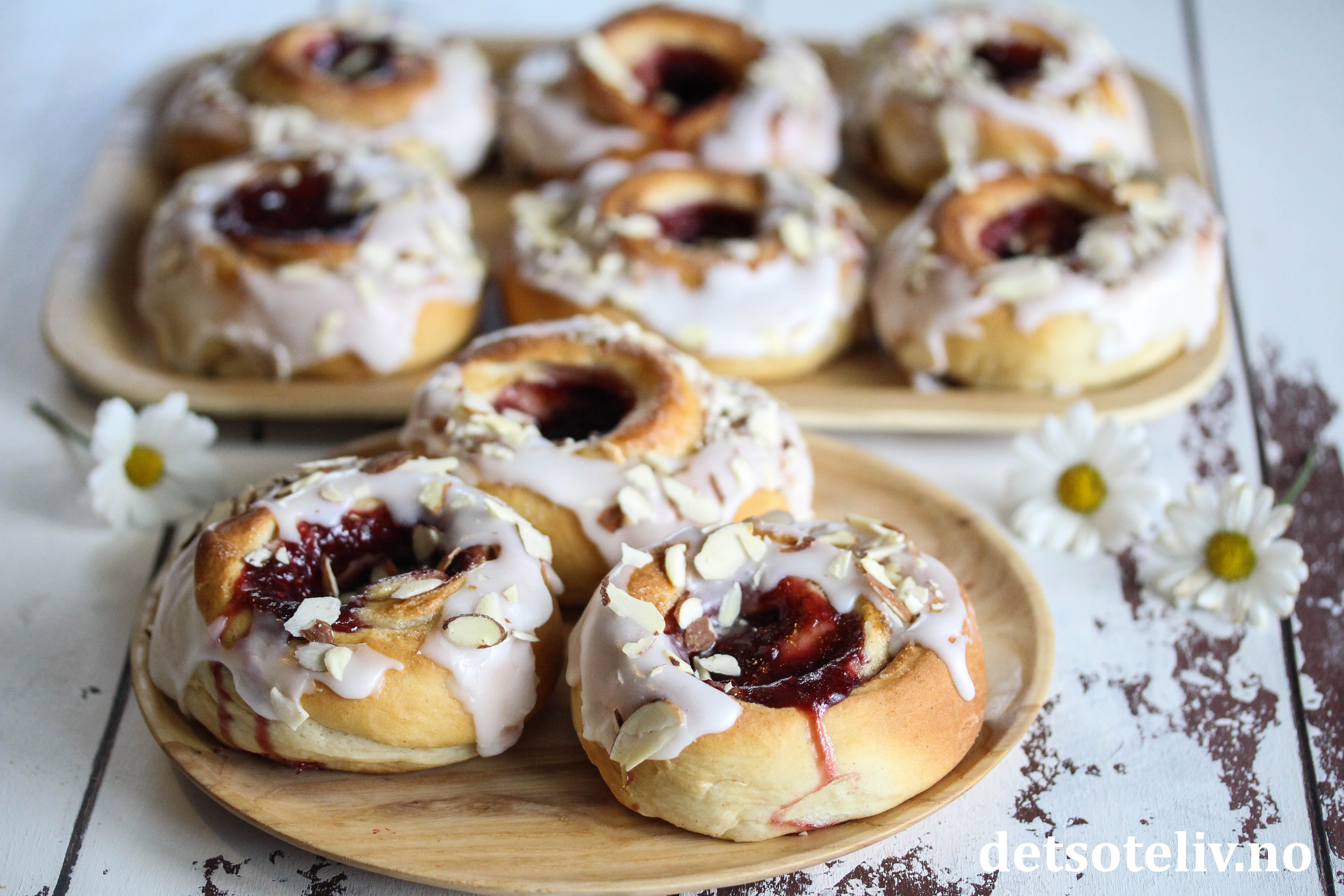 Bringebærsyltetøy kan byttes ut med annen type syltetøy du liker, se for eksempel Kanelboller med blåbær.