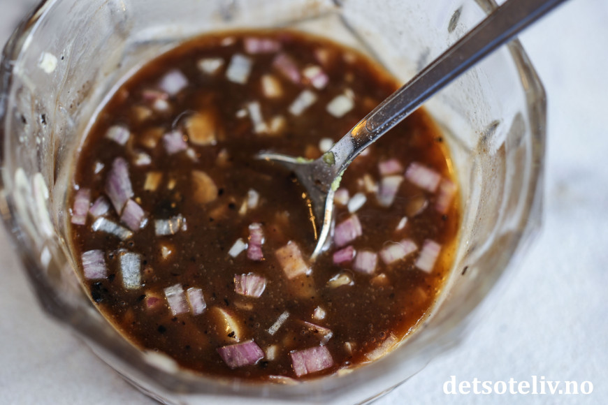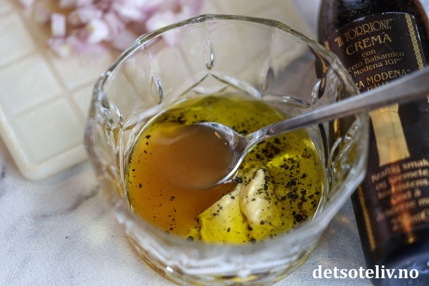 Bland sammen ingrediensene til dressingen.