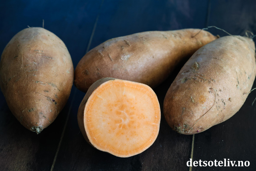 Mengden smør i søtpotetpuréen kan du justere etter ønske. Tilsetter du mer, blir puréen fyldigere.