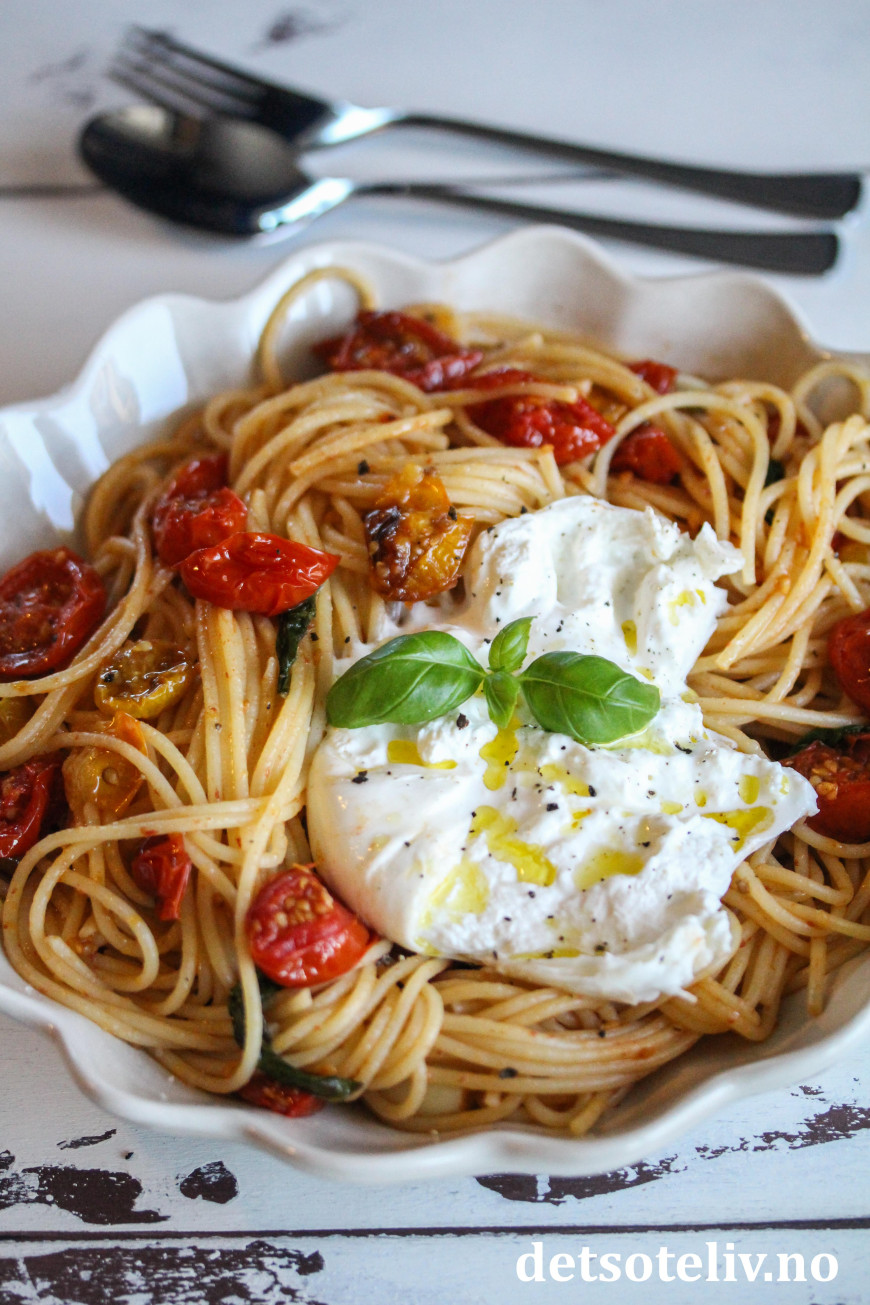 Hva har du lyst på i dag? Kanskje det kan friste med "Spaghetti con pomodorini confit e burrata"? 😍