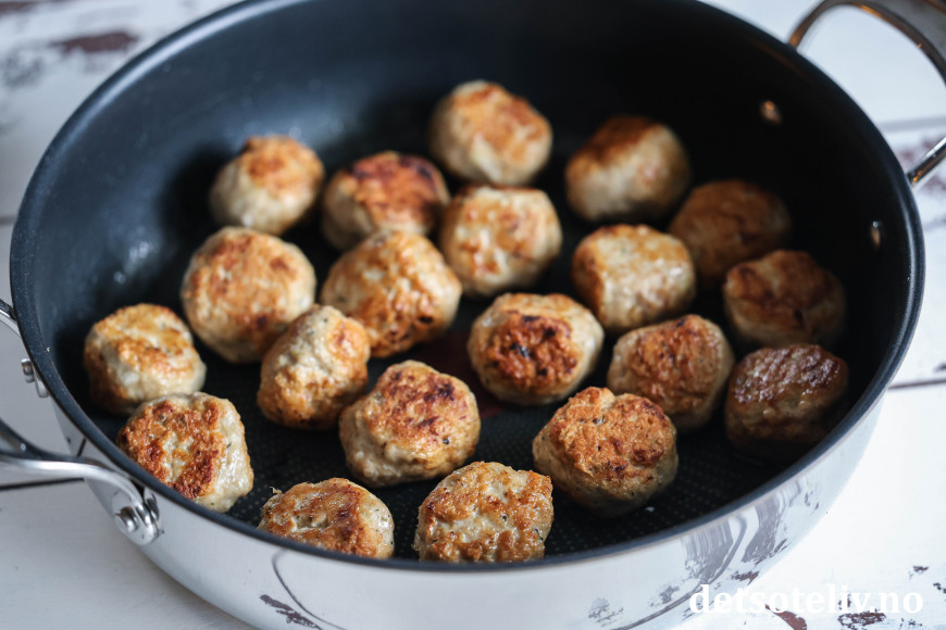 Stek kyllingkjøttbollene på middels varme til de blir godt brunet på alle sider.