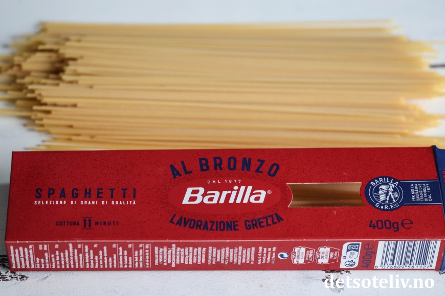 ♥ Spagetti er godt uansett, men hvis du får tak i det, burde du bruke spagetti med litt ekstra god kvalitet. Fordelen med spagetti av god kvalitet er er at den er mindre glatt på overflaten og dermed tar til seg mer av den gode sausen. Det går så klart fint å bruke andre varianter av pasta enn spagetti.