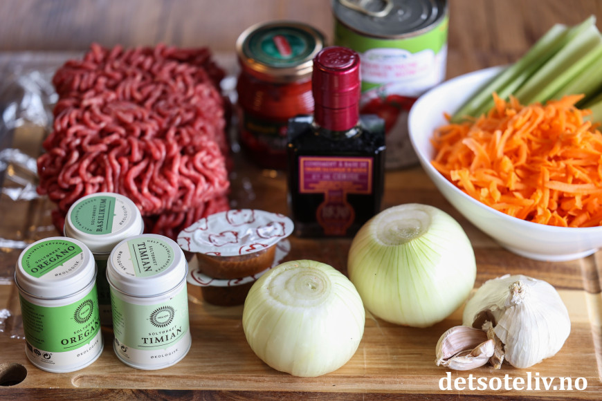 Start med å lage kjøttsausen, siden den helst skal småputre i flere timer før du blander den med kokt spagetti.