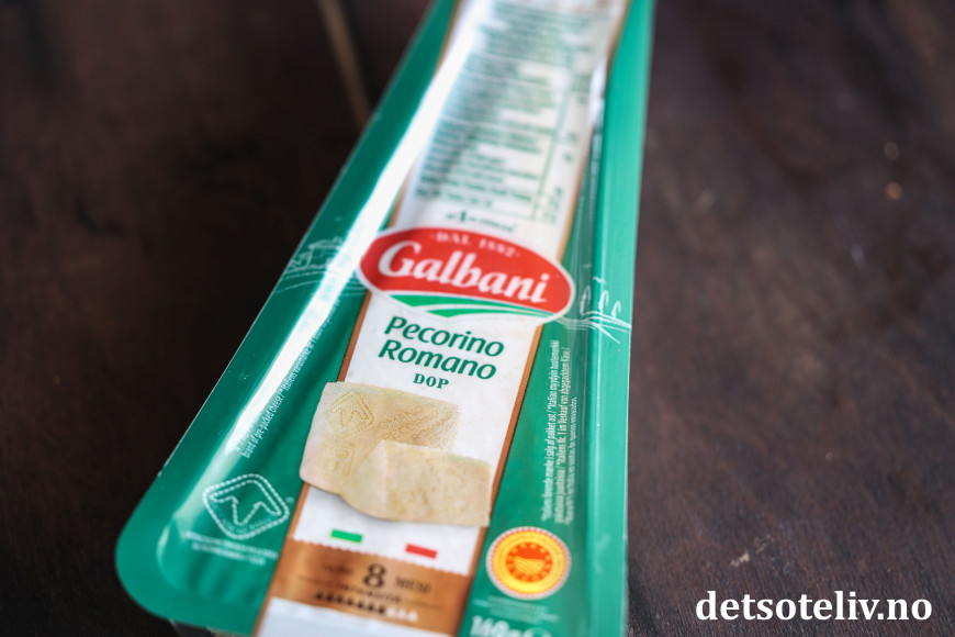 ♥ Pecorino romano gir en mer markant smak enn parmesan. Bruk det du liker best, eller bruk halvparten av hver.