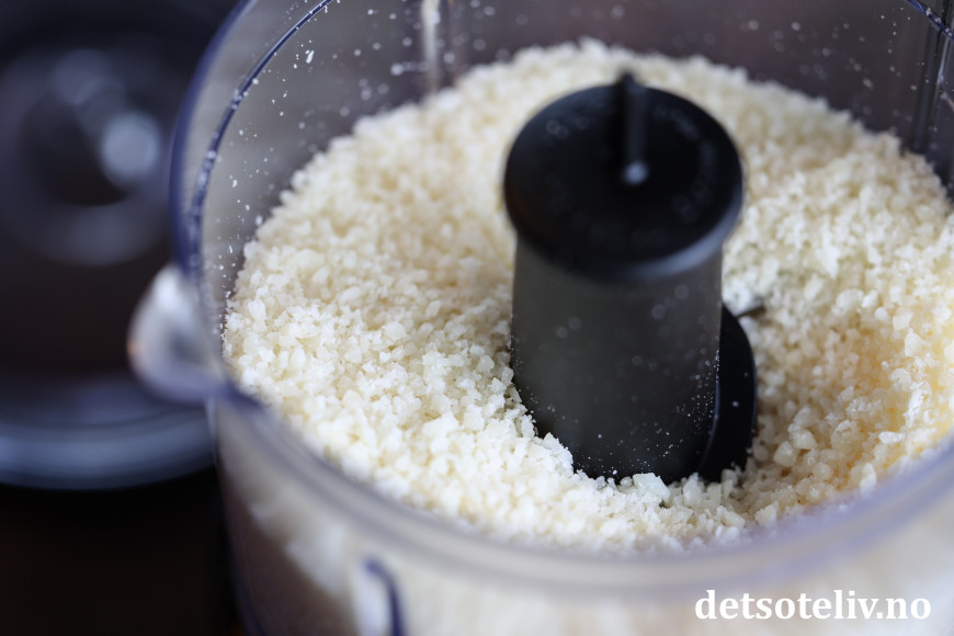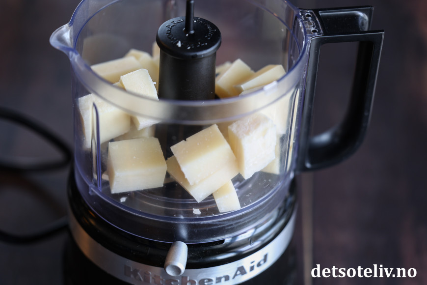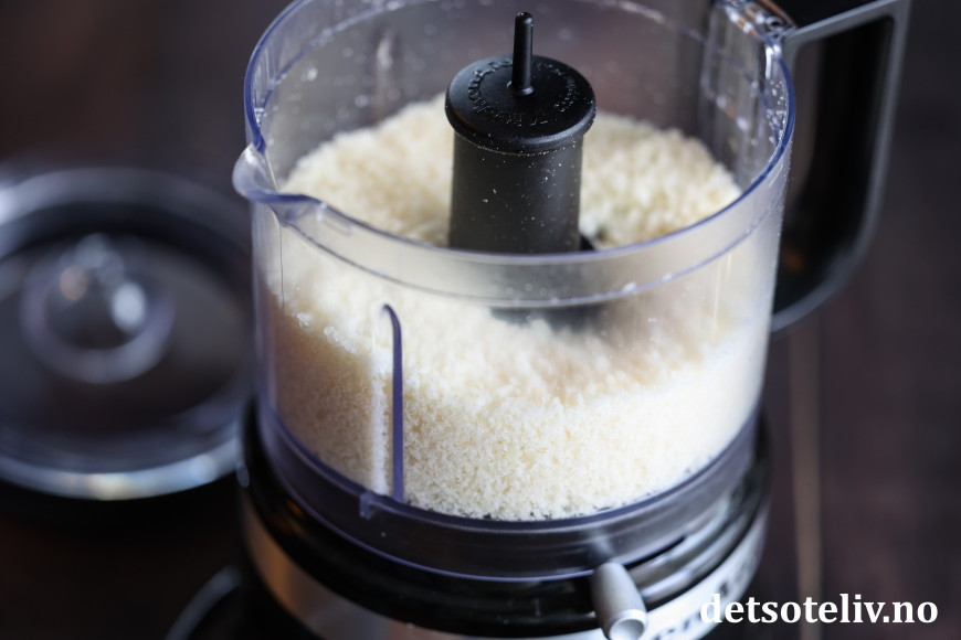 Riv osten fint. Jeg bruker en liten food processor til dette, men du kan også bruke fint rivjern.