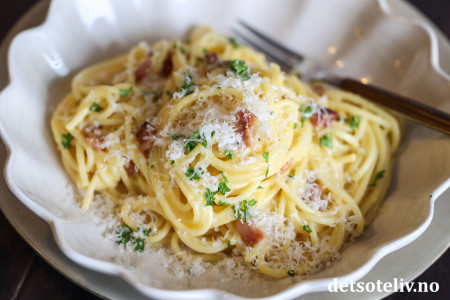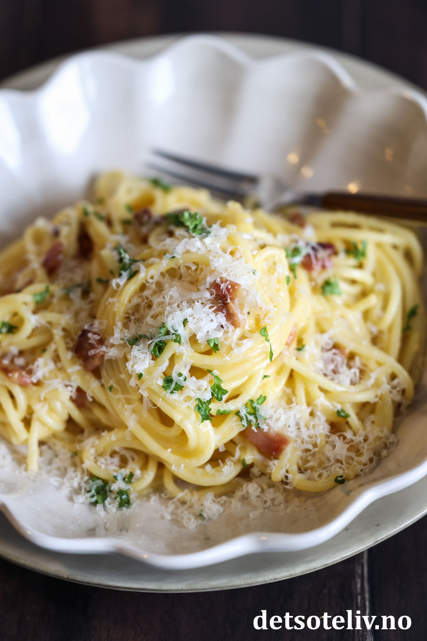 En skål med kremete spaghetti carbonara er virkelig helt utrolig godt! 😍