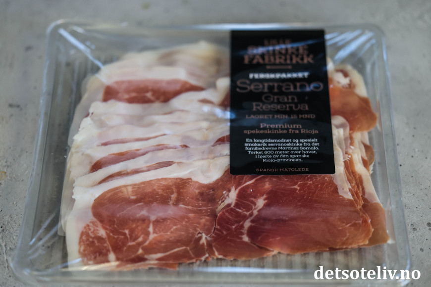 ♥ Til denne forretten har det mye å si at man bruker gode råvarer. Du kan bruke italiensk parmaskinke eller spansk serranoskinke, eller norske varianter av spekeskinke.