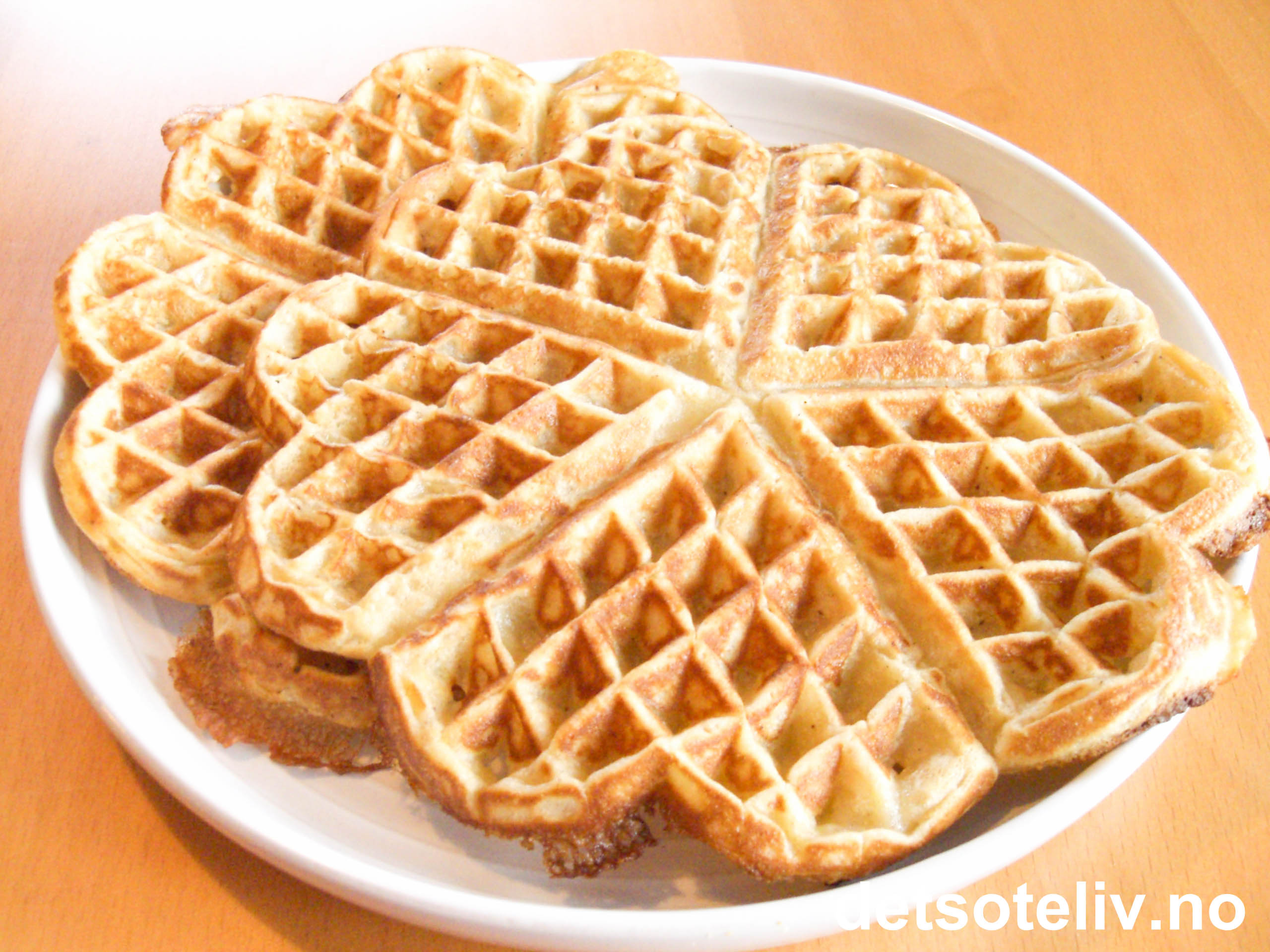 Vaflene smaker nydelig sammen med litt vaniljekesam og dryss av sukker.