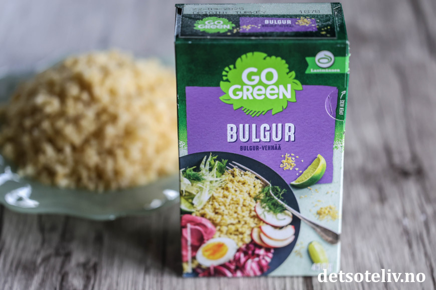 Jeg brukte her kokt bulgur (kokes i saltet vann etter anvisning på pakningen).