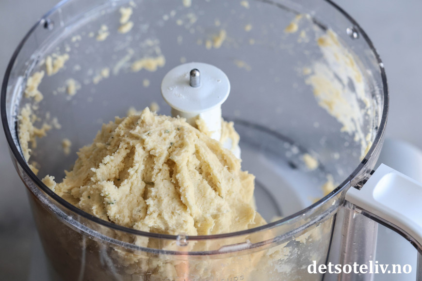 Bland sammen. Tilsett mykt smør, chèvre og hvitvinseddik.