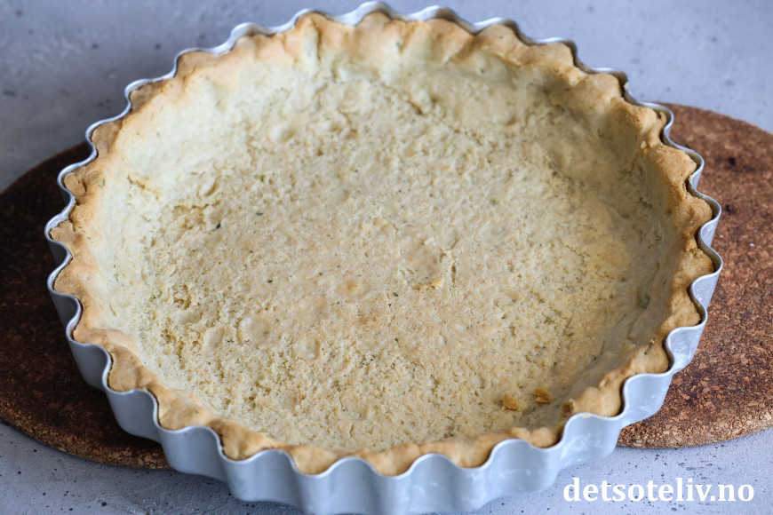 Forstek paibunnen midt i ovnen ved 220°C i ca. 10 minutter. Fjern bakepapiret og bakekulene og stek paibunnen midt i ovnen ved 220°C i ca. 5 minutter til.