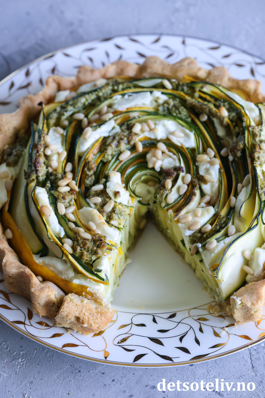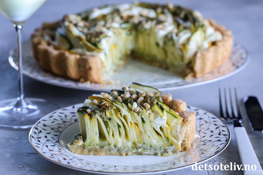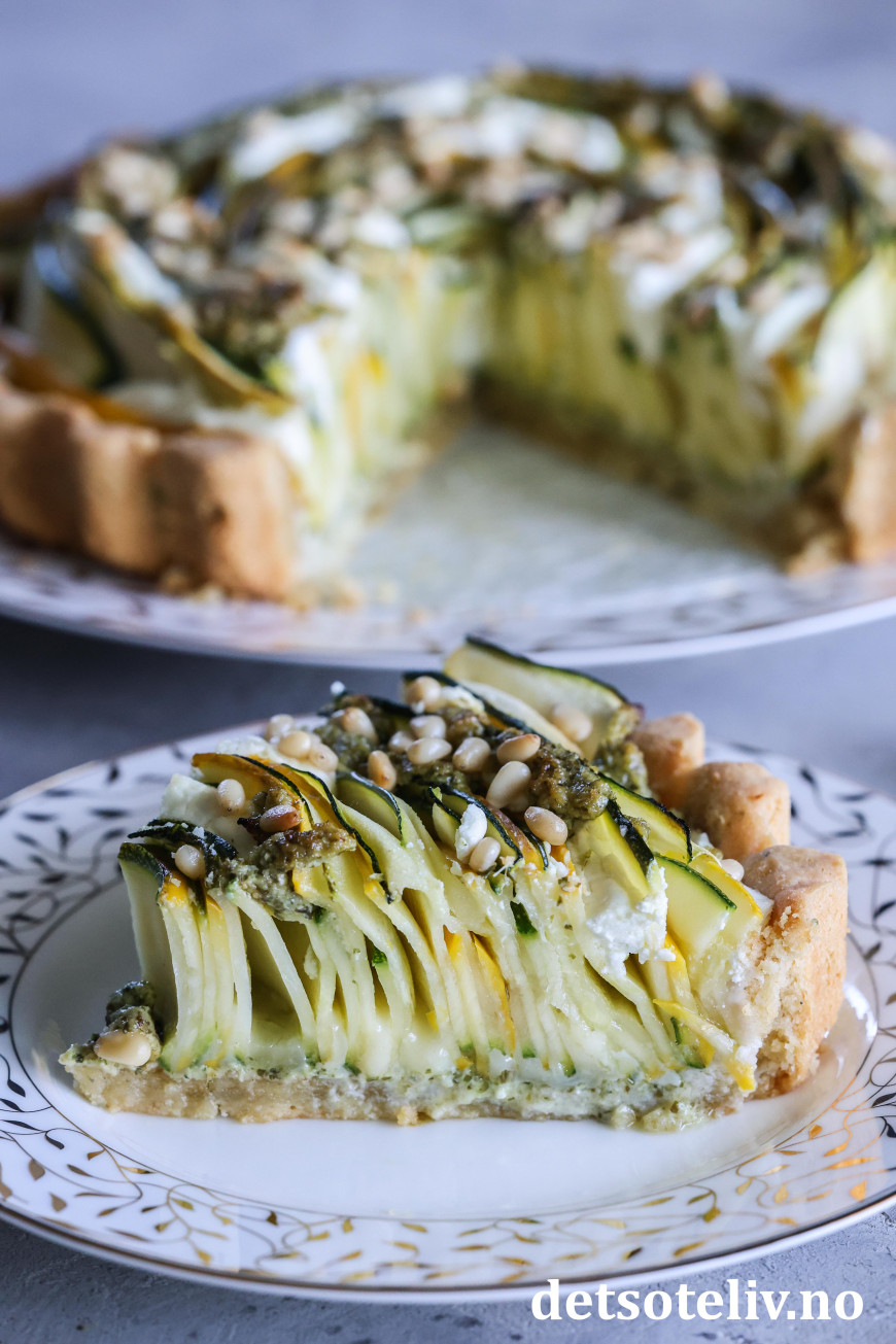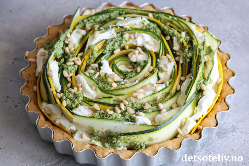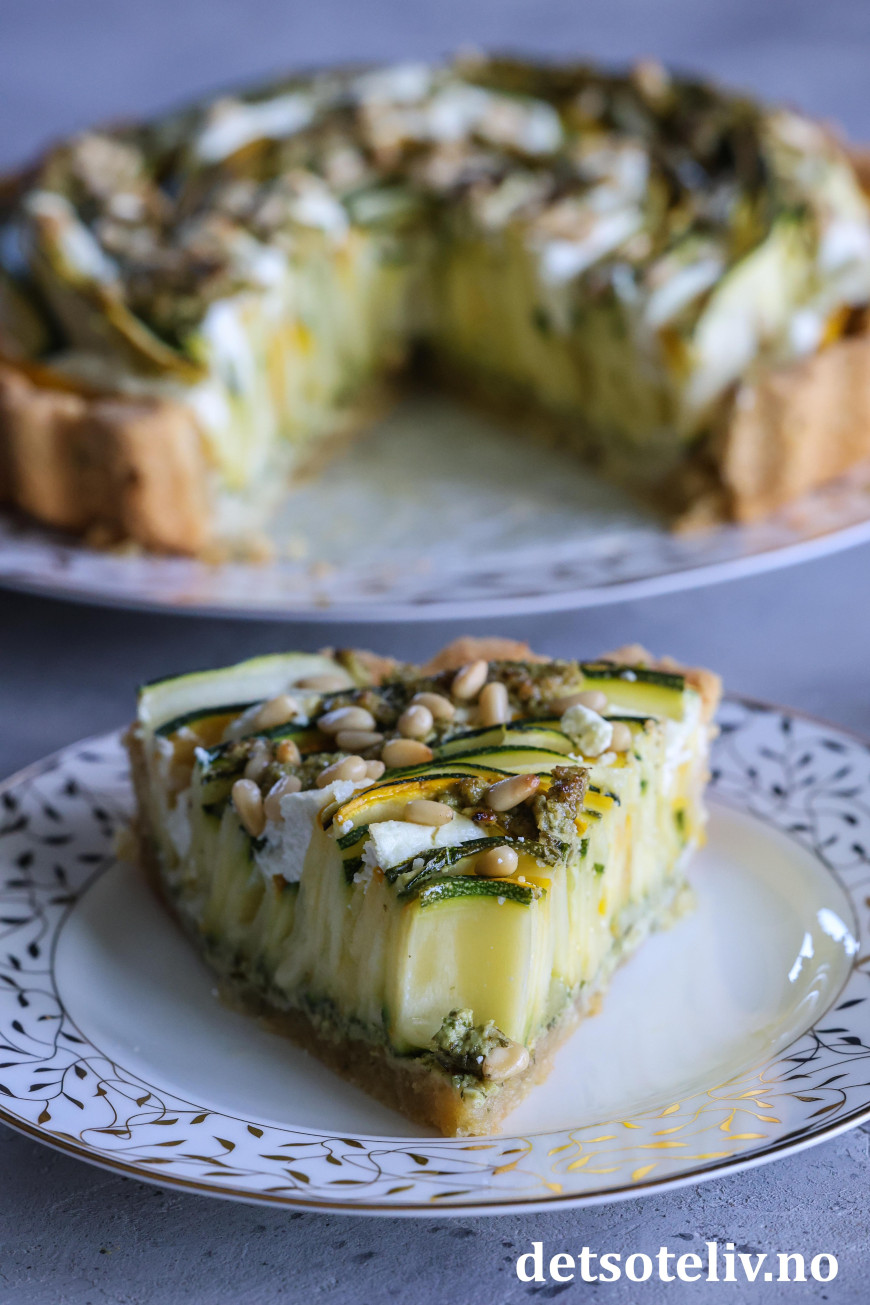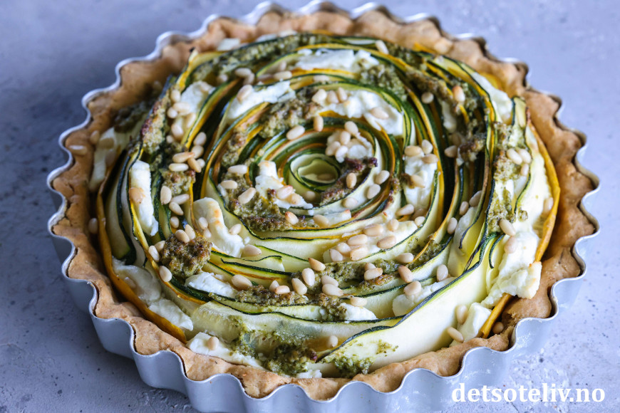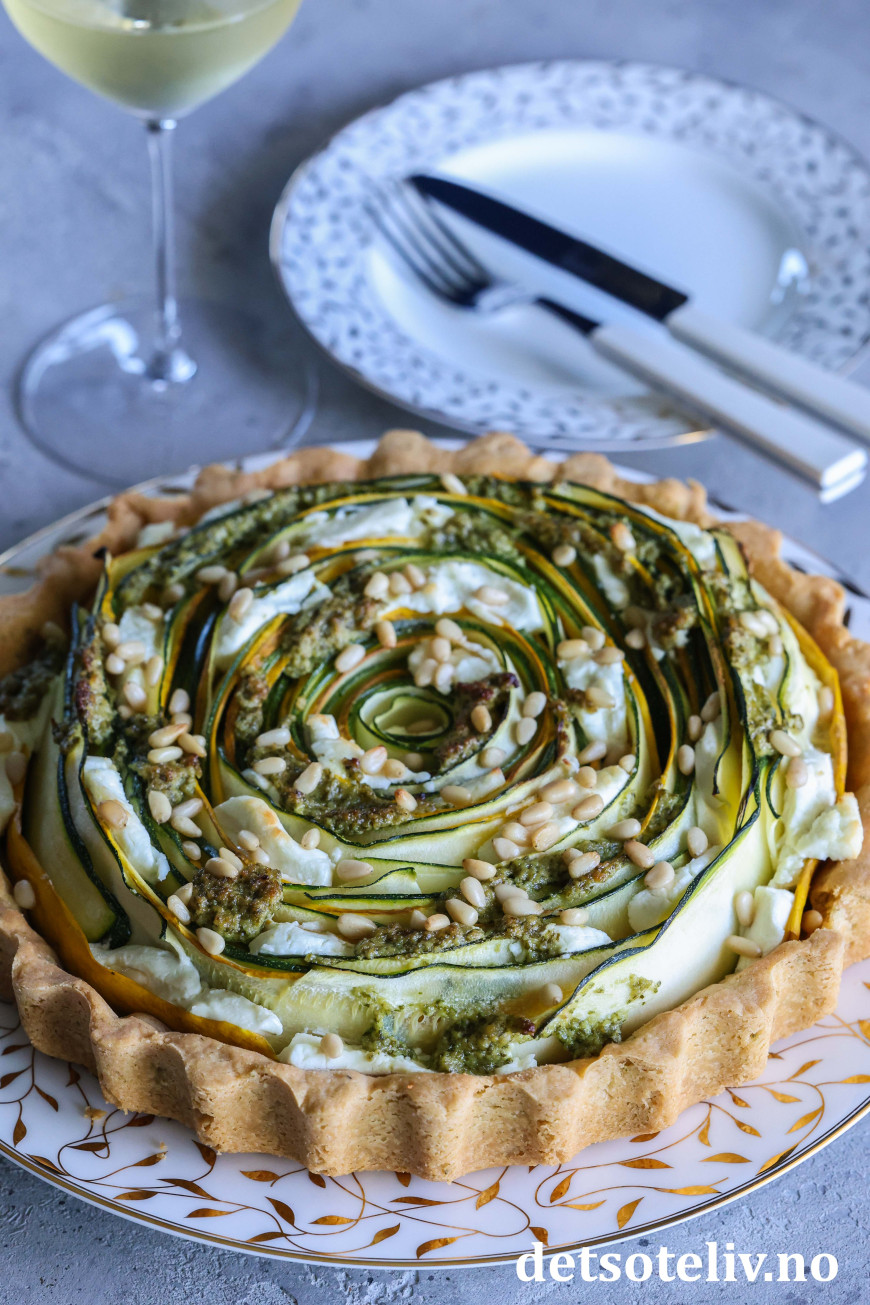 Paien er franskinspirert (Tarte aux courgettes et chèvre), med italiensk innslag på grunn av pestoen.