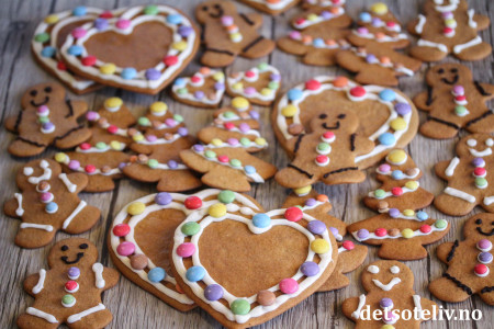 Stek kakene midt i ovnen ved 180°C i 5-10 minutter, avhengig av hvor store pepperkakene er.
