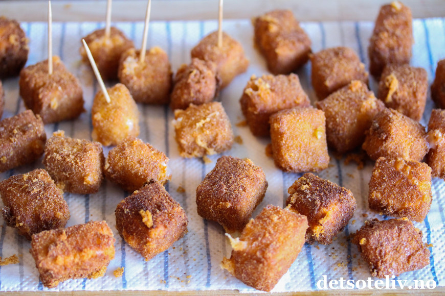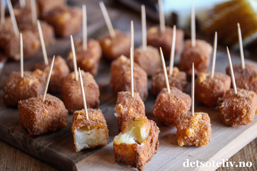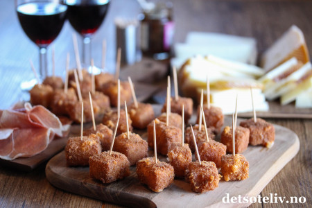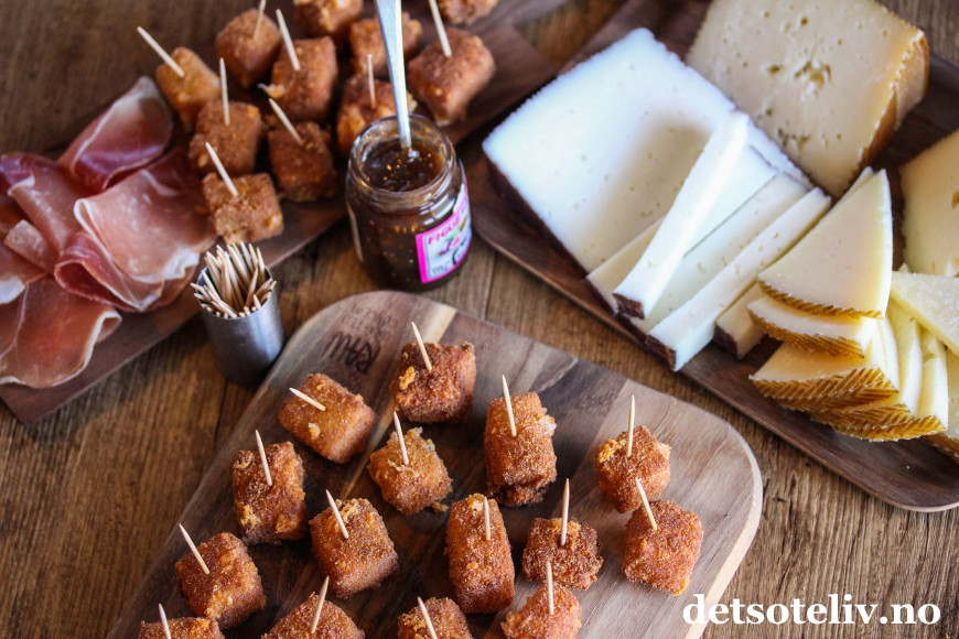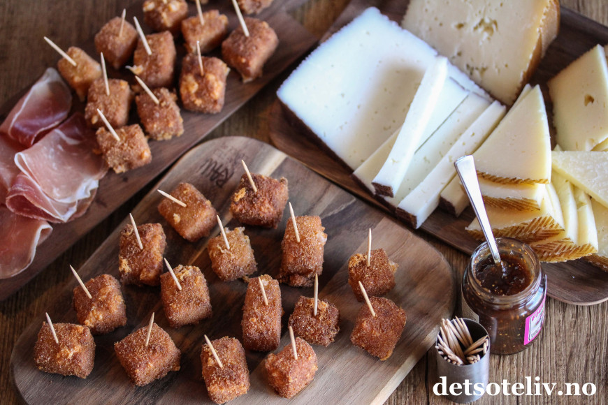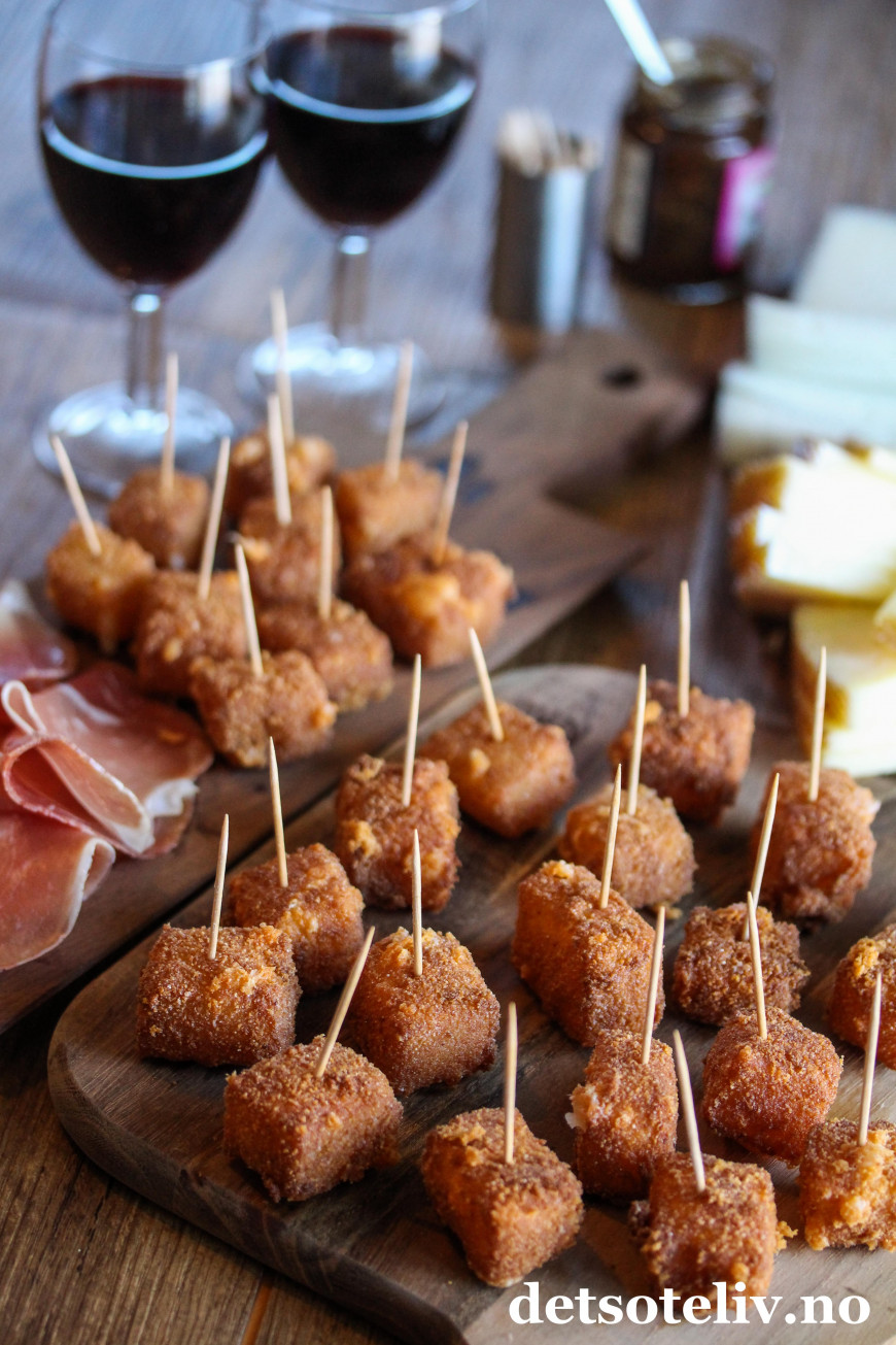 Og i tillegg brukte jeg noe av manchegoen til å lage knallgode, frityrstekte "Manchego fritters" som serveres varme.