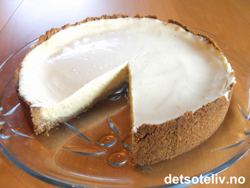 Rør sammen ingrediensene til toppingen. Bre toppingen forsiktig over kaken. Sett kaken tilbake i ovnen og stek videre i 5 min. Avkjøl kaken i kjøleskapet til neste dag (se tips). Løsne kaken forsiktig fra formen og dra av bakepapiret fra undersiden. Sett kaken på et passende fat.