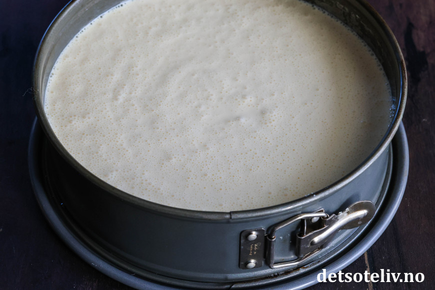 Hell osterøren i formen. Stek kaken videre midt i ovnen ved 180°C i 30 minutter.