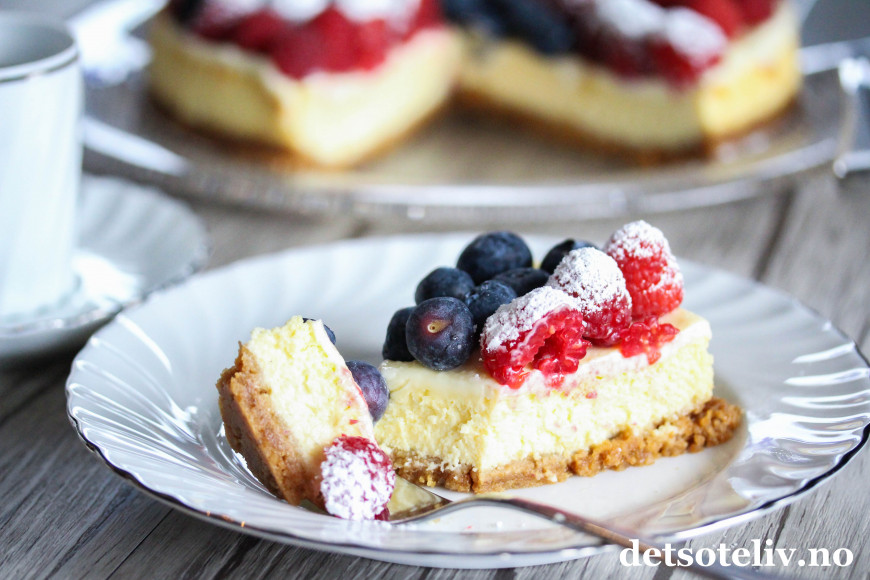 Kremete ostekake med smak av vanilje er ypperlig sammen med friske bær.