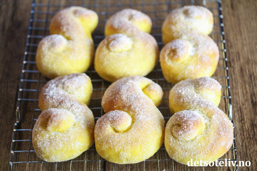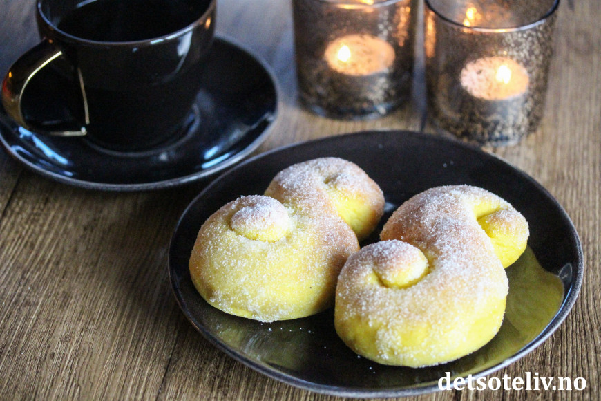 Her har jeg laget en variant med safran som passer godt til Luciadagen, men de er nydelige gjennom hele vinteren!