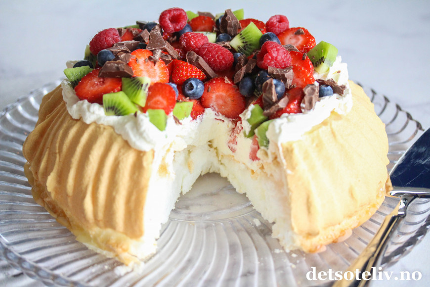 Pavlova er blant våre mest populære sommerkaker. En høy, flott marengskake som bugner av krem og friske bær er perfekt å servere til sommerfesten!