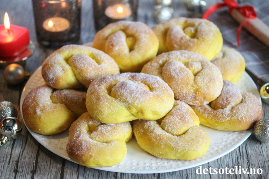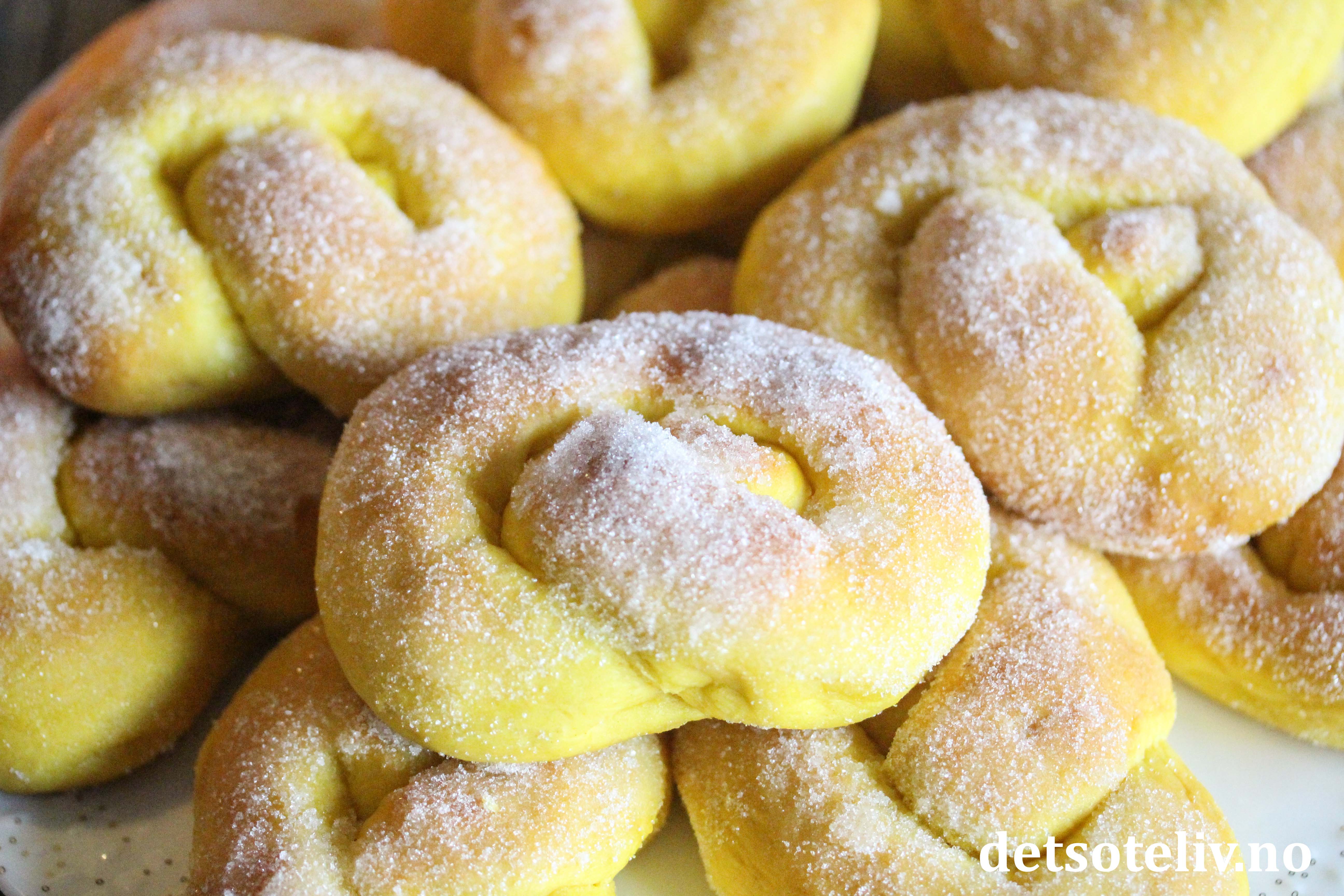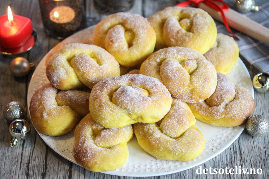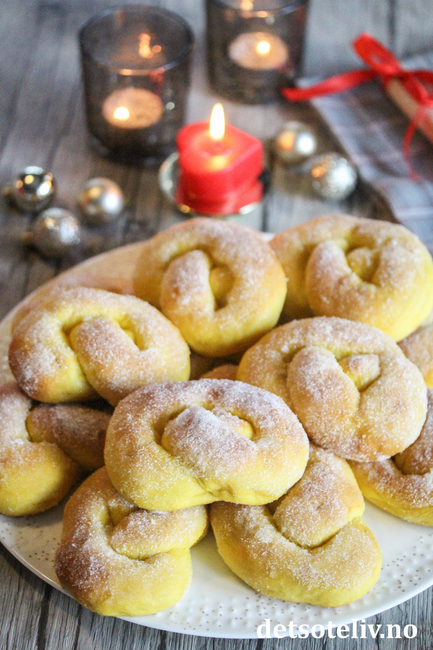 I stedet for klassiske Lussekatter, har jeg her laget myke, deilige kringler med safran som er populære i Sverige. Kringlene pensles med smør når de er helt nystekte og dyppes i sukker.