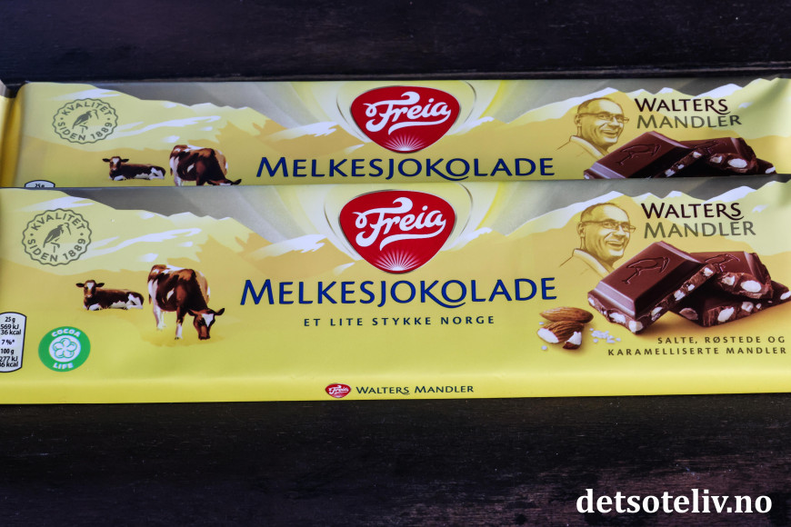 ♥ Walters Mandler fås kjøpt i de fleste matbutikkene. 200 gram tilsvarer 1 stor sjokoladeplate. Se også oppskrift på fantastisk Walters Mandler Sjokoladefestkake.