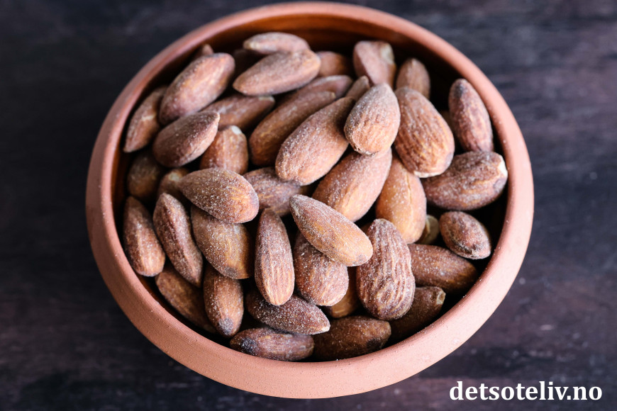 ♥ Du kan bruke enten ferdigkjøpte eller hjemmelagde salte mandler.
