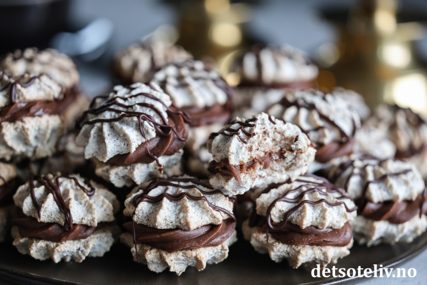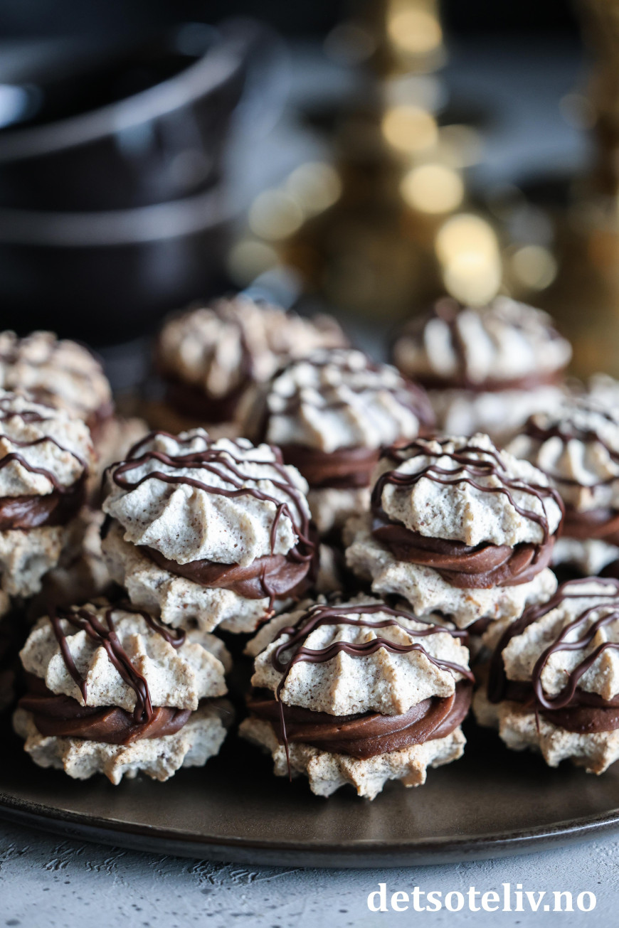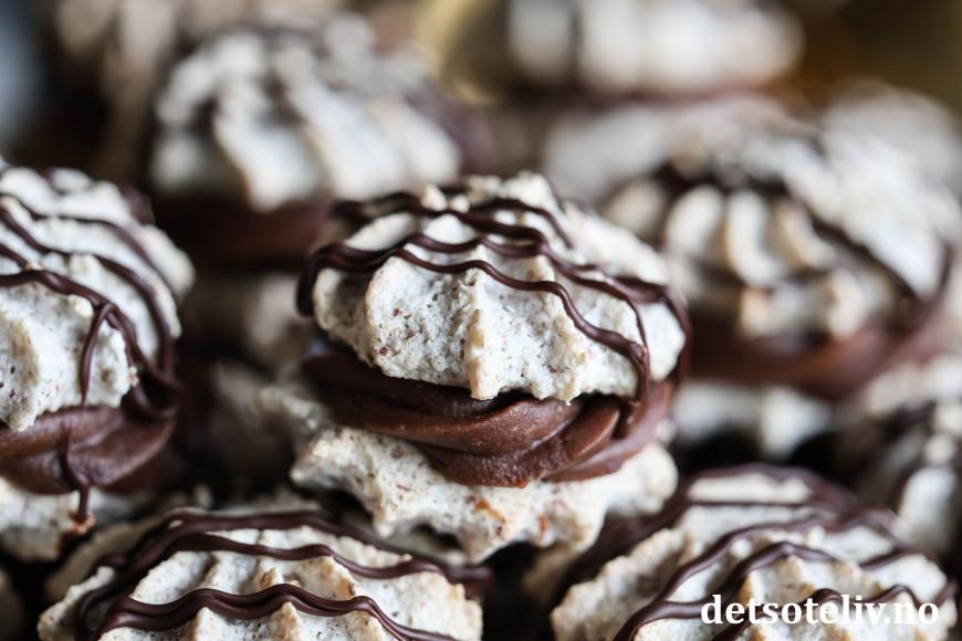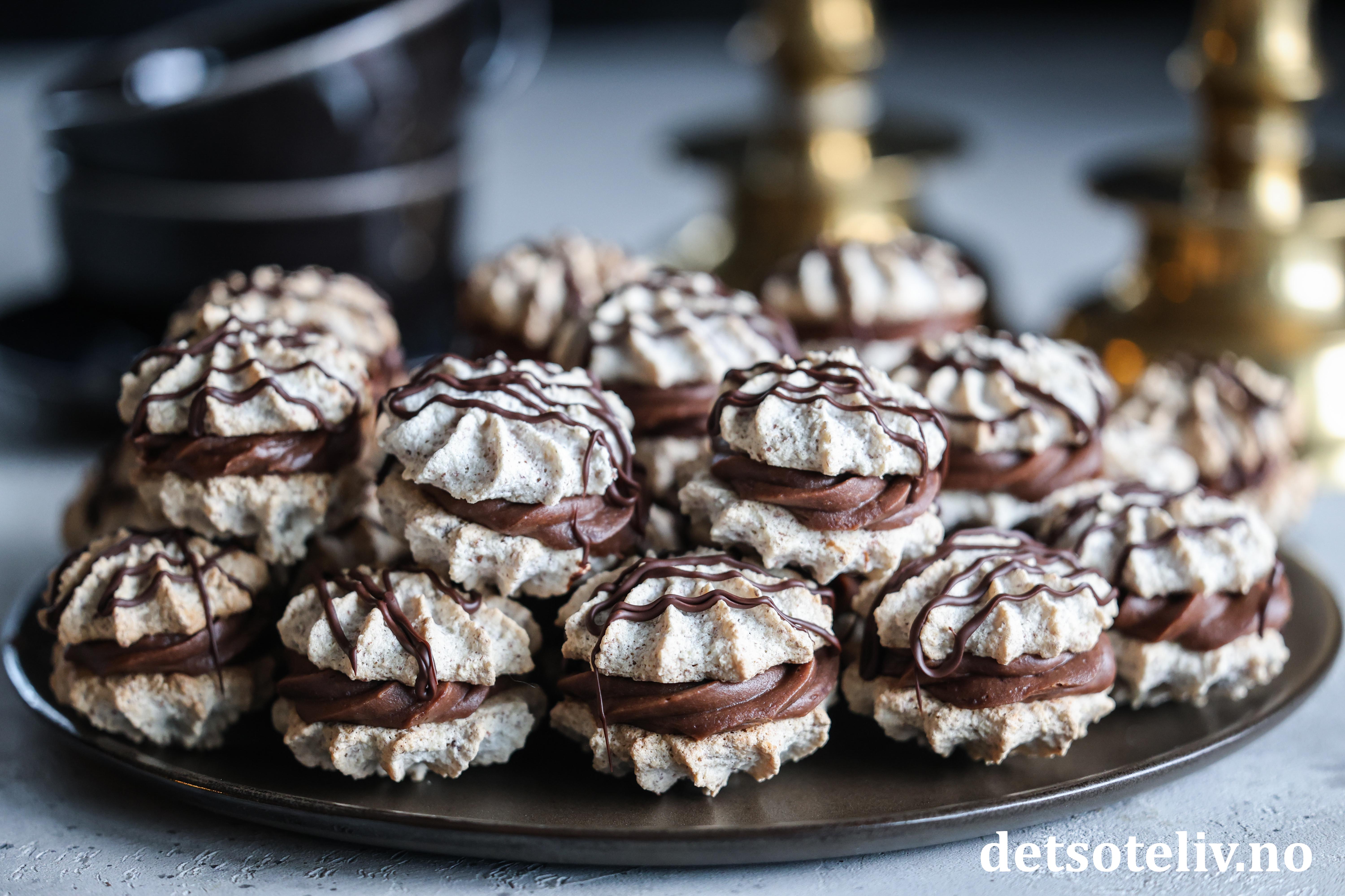 ♥ Suksesskaker med sjokoladekrem er supre å gi i førjulspresang! Legg dem i søte plastposer og oppbevar kjølig til du gir dem bort.