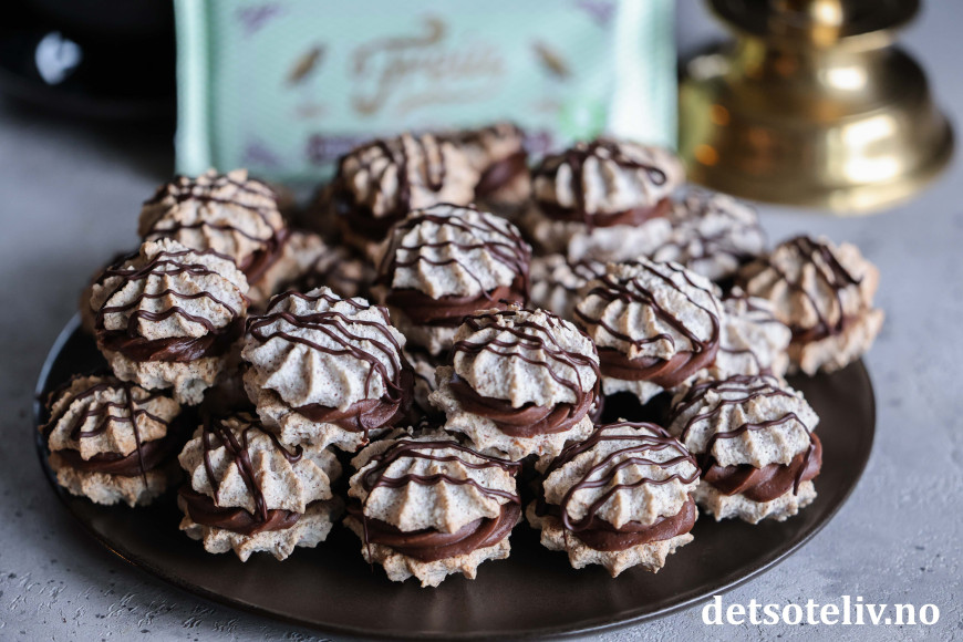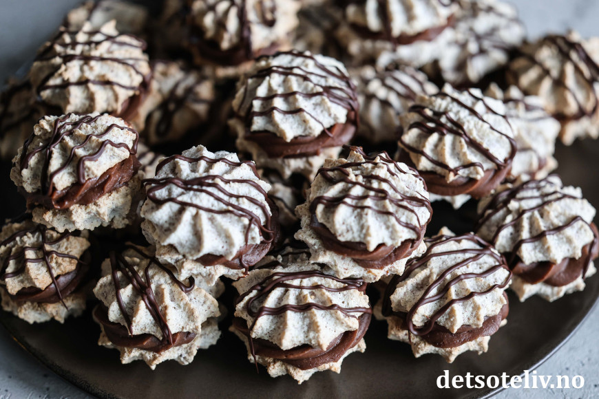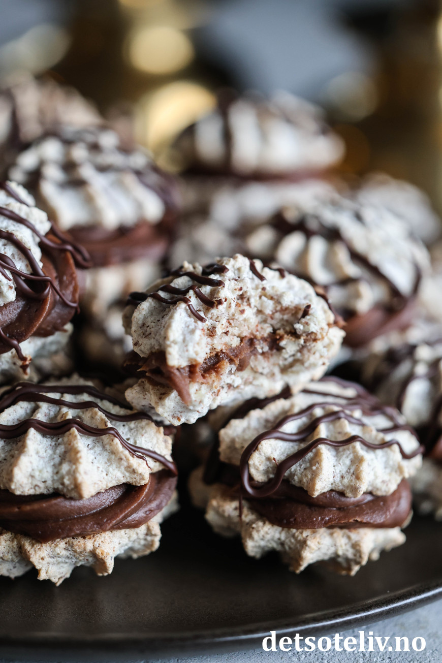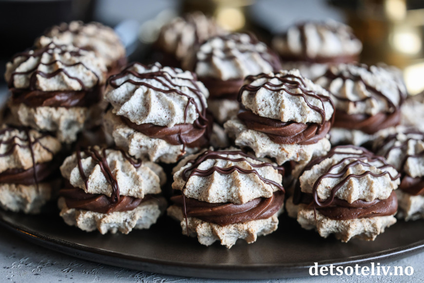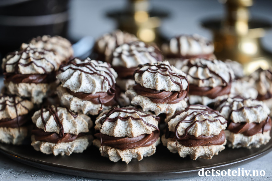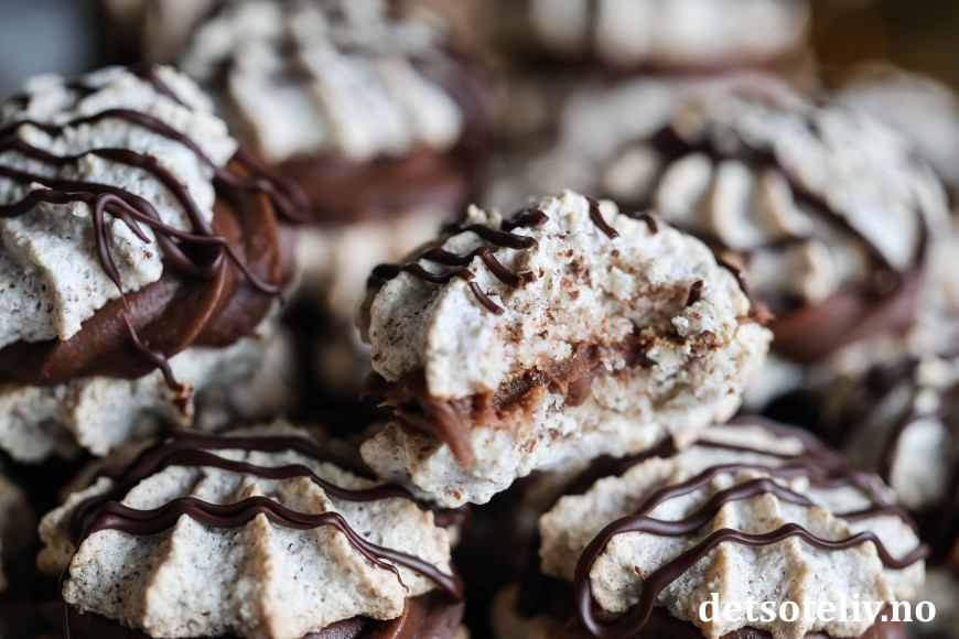 ♥ Suksesskaker med sjokoladekrem er supre å gi i førjulspresang! Legg dem i søte plastposer og oppbevar kjølig til du gir dem bort.