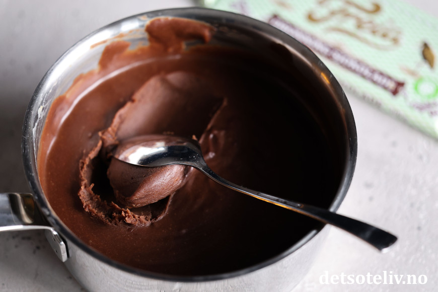 ♥ For å få en god smak og konsistens på sjokoladekremen anbefaler jeg at du bruker Freia Dronningsjokolade, som har veldig god kvalitet.