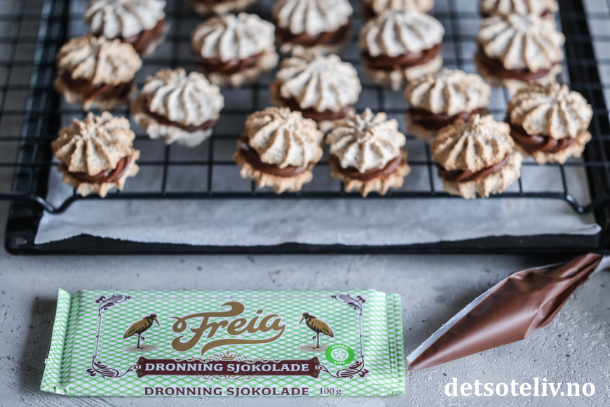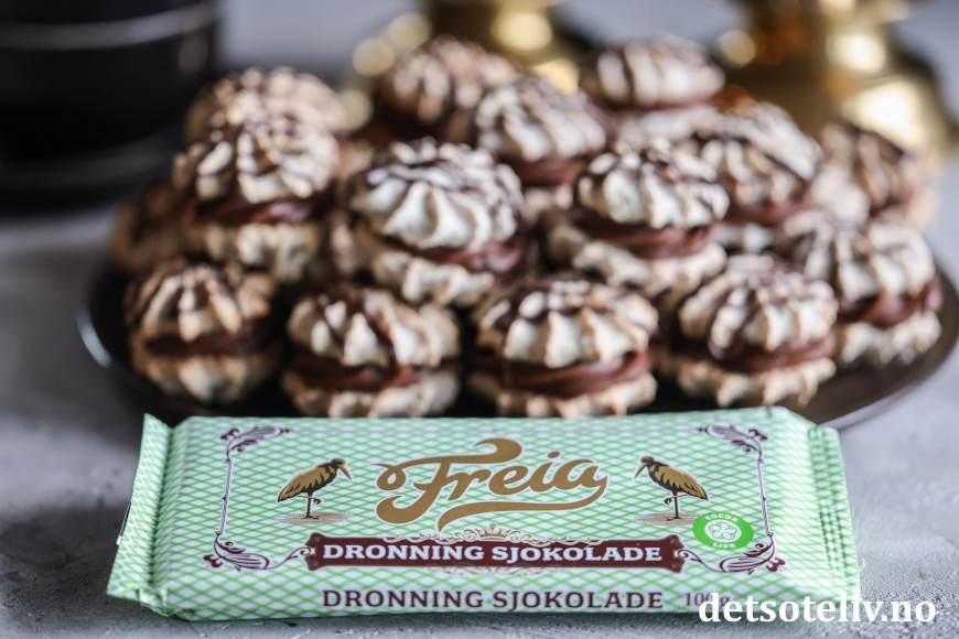 Freia Dronningsjokolade sørger for at sjokoladekremen får akkurat passe, tykk konsistens til å kunne sprøytes ut og ikke minst en helt fantastisk god sjokoladesmak!
